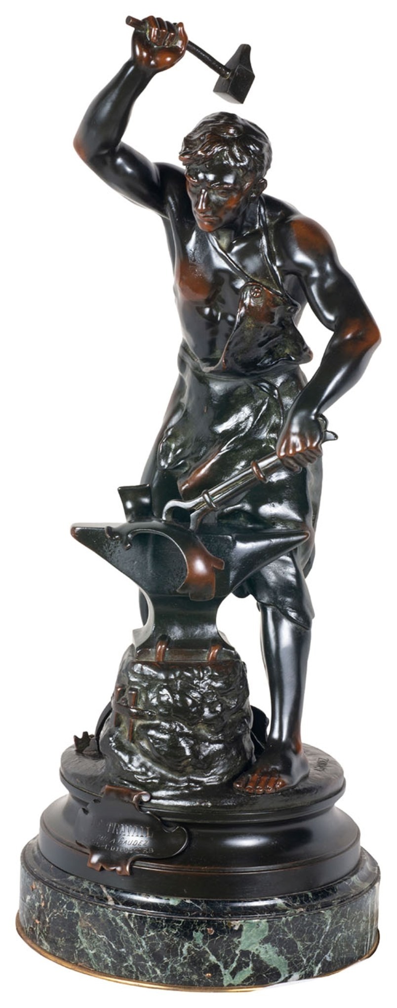19th Century Bronze statue of a Blacksmith, signed Gaudez