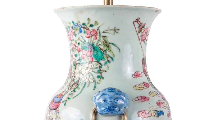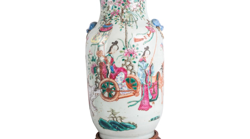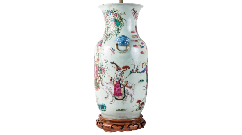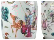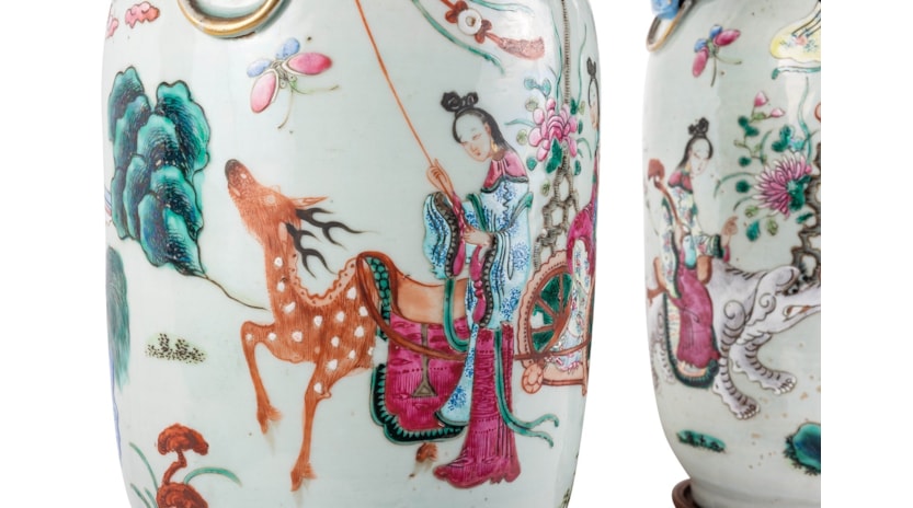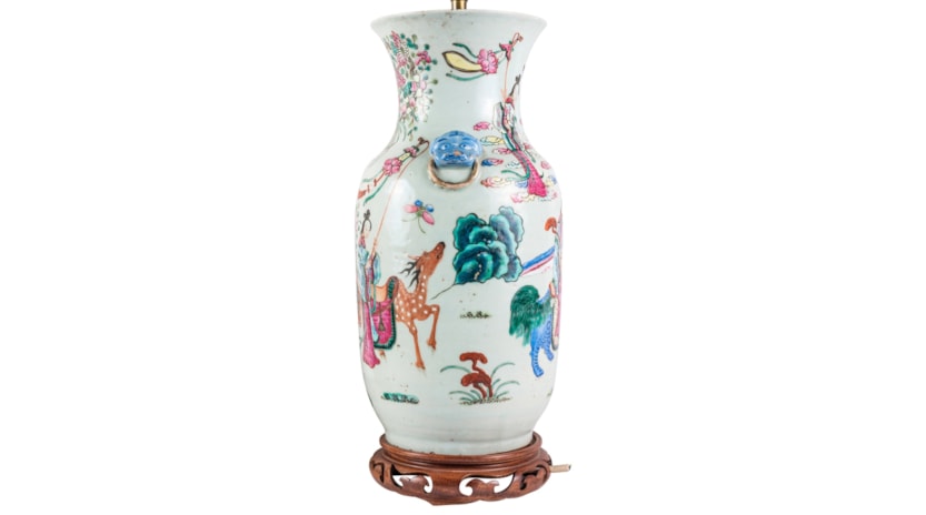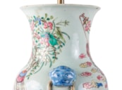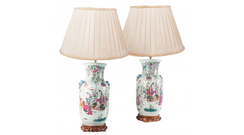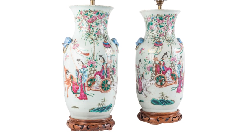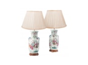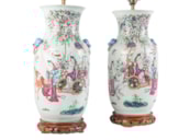 Pair 19th Century Chinese Famille Famille rose vases / lamps