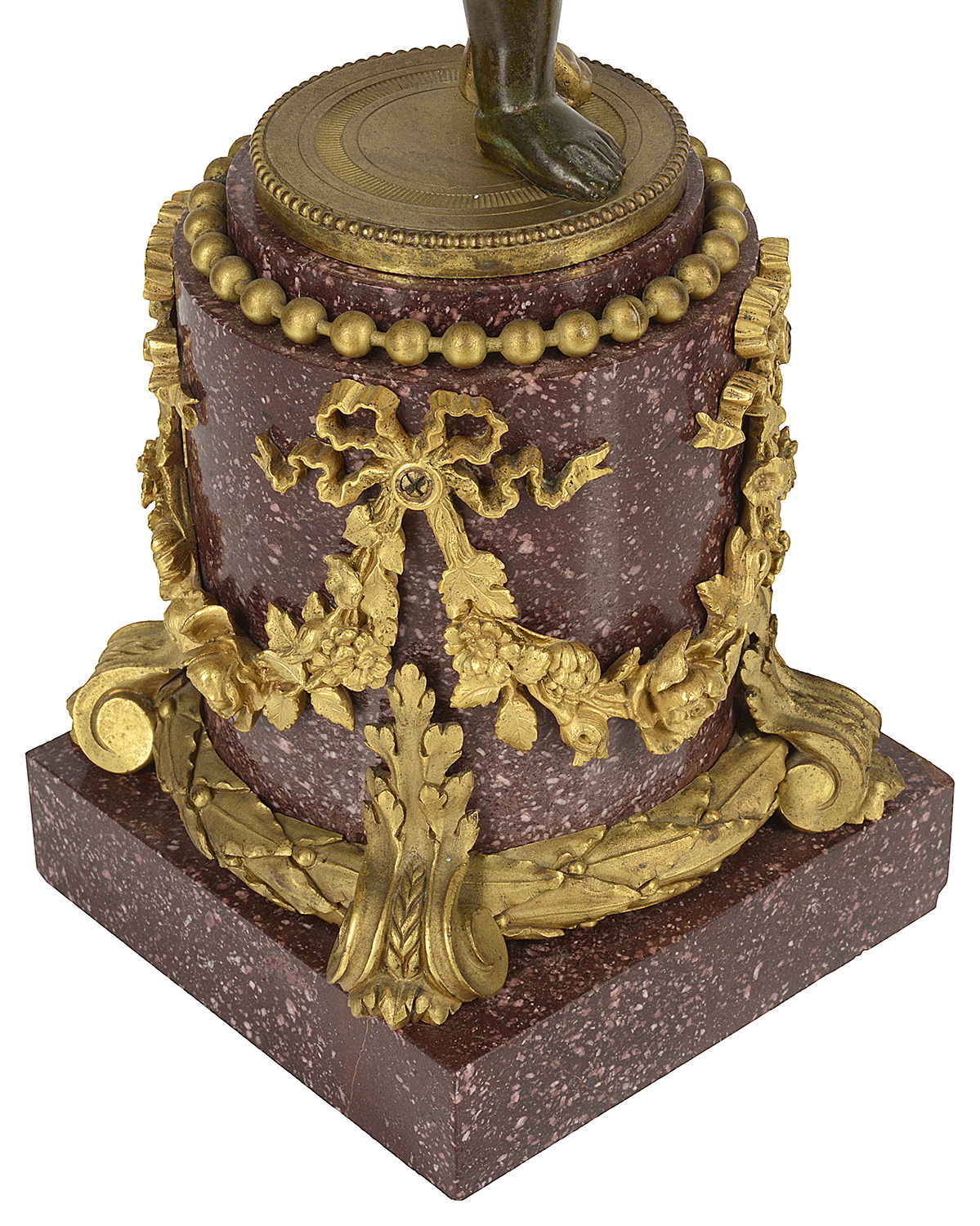 Home > Fine pair 19th Century ormolu and Porphyry candelabra, attributed to Henry Dasson