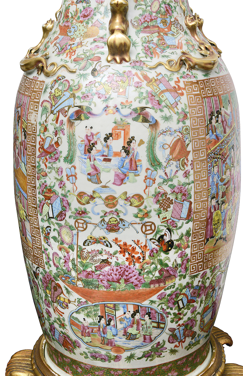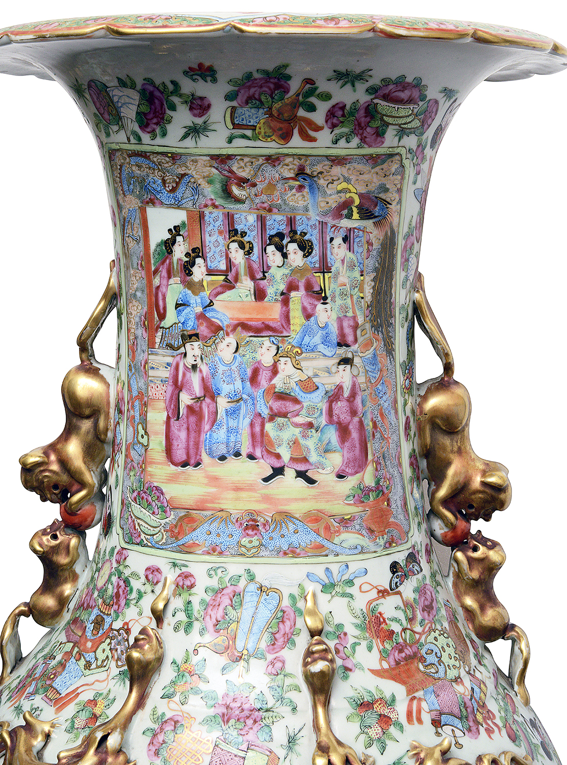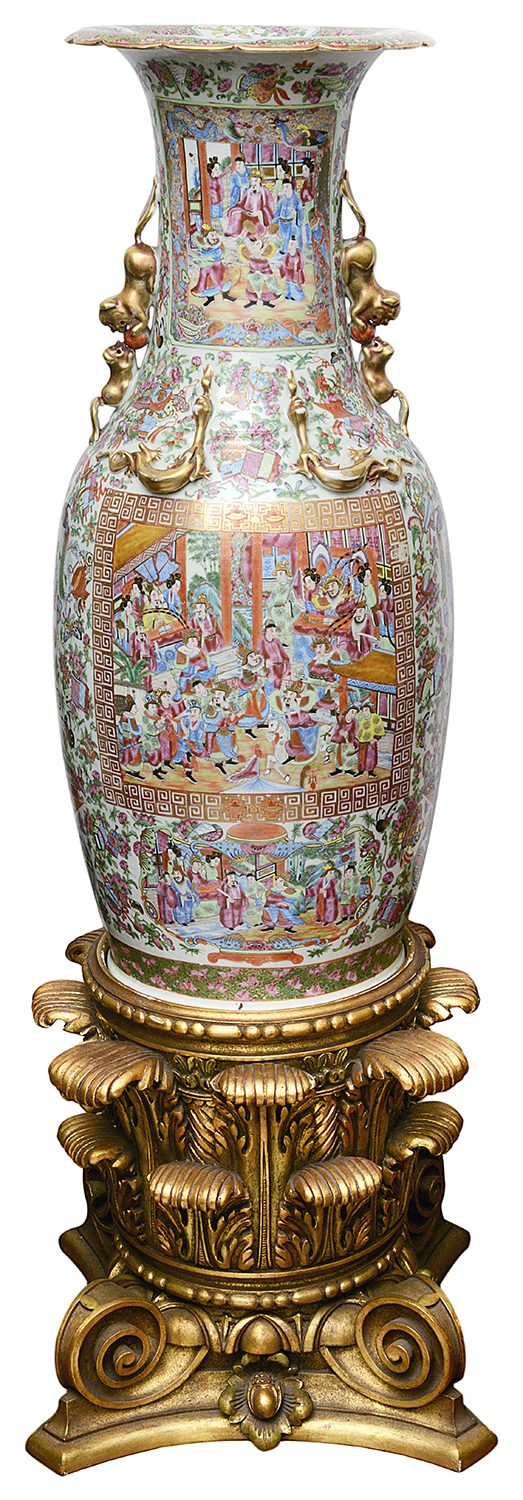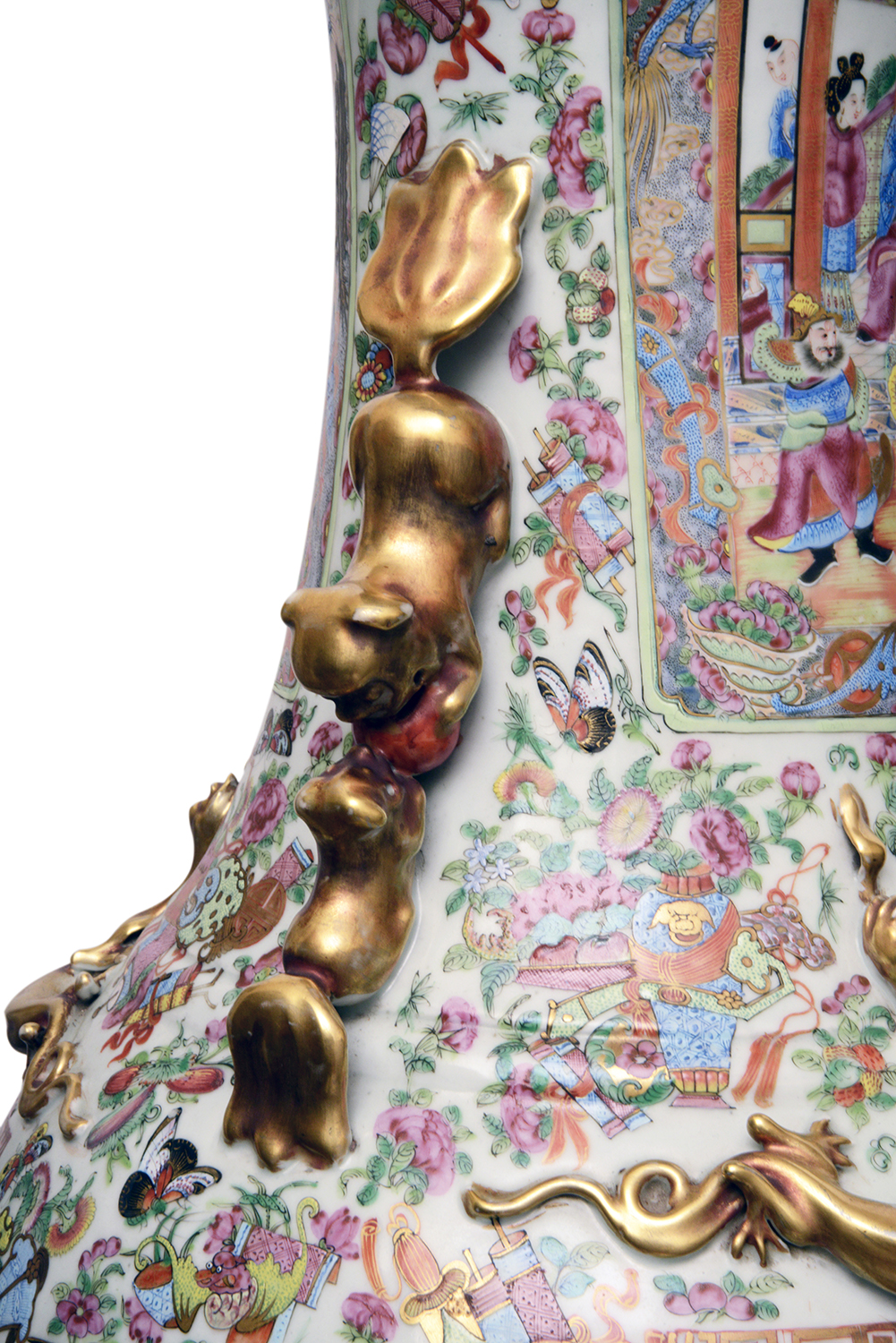 A very impressive good quality pair of 19th Century Chinese Cantonese / Rose medallion vases on stands.