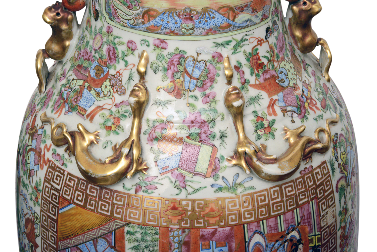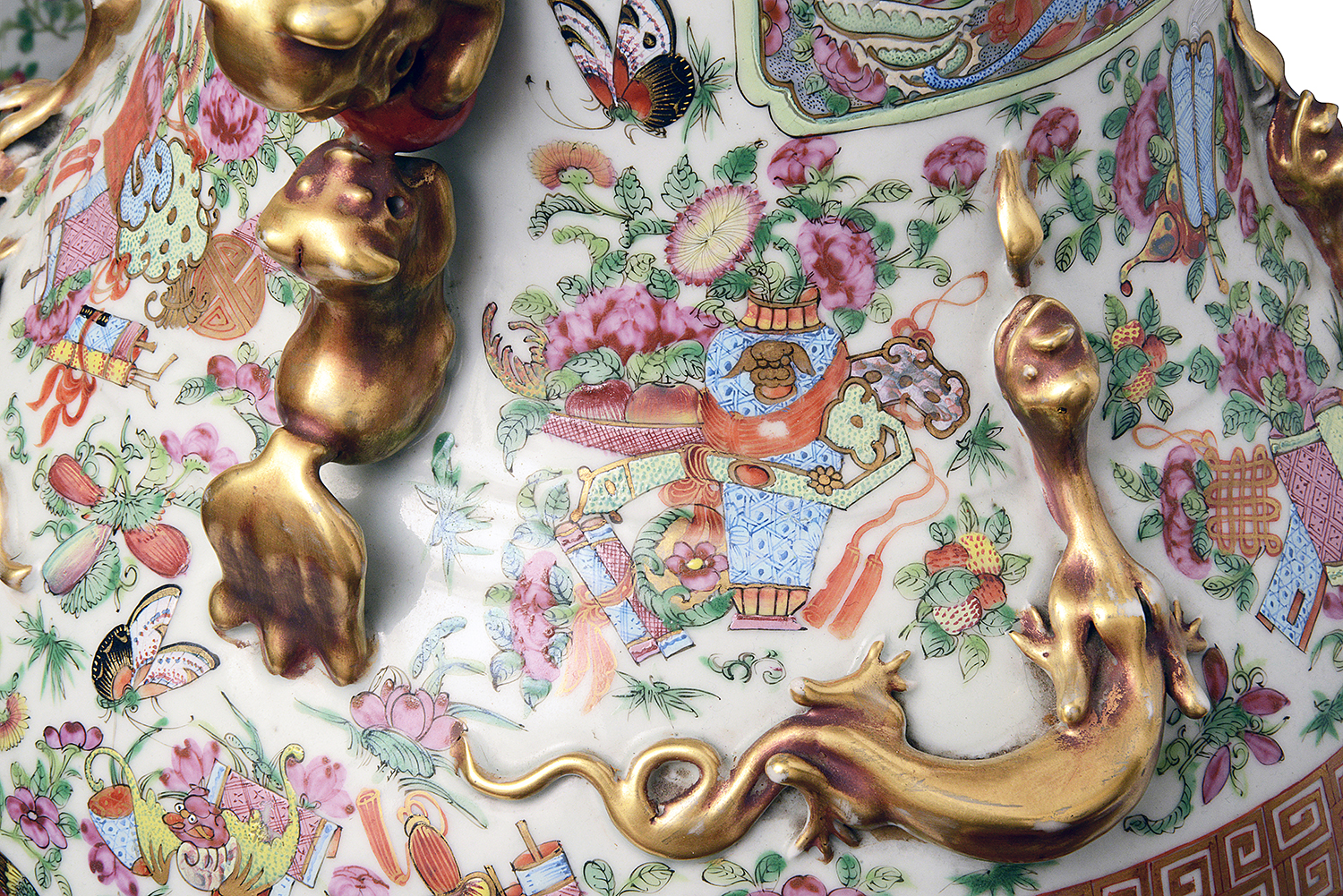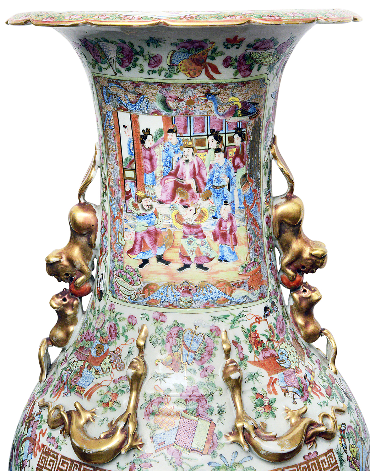 A very impressive good quality pair of 19th Century Chinese Cantonese / Rose medallion vases on stands.