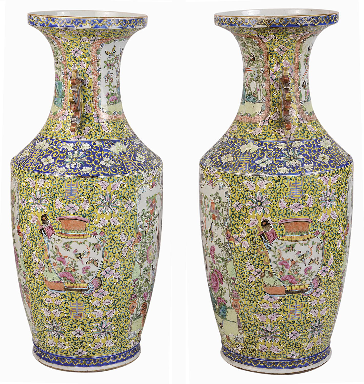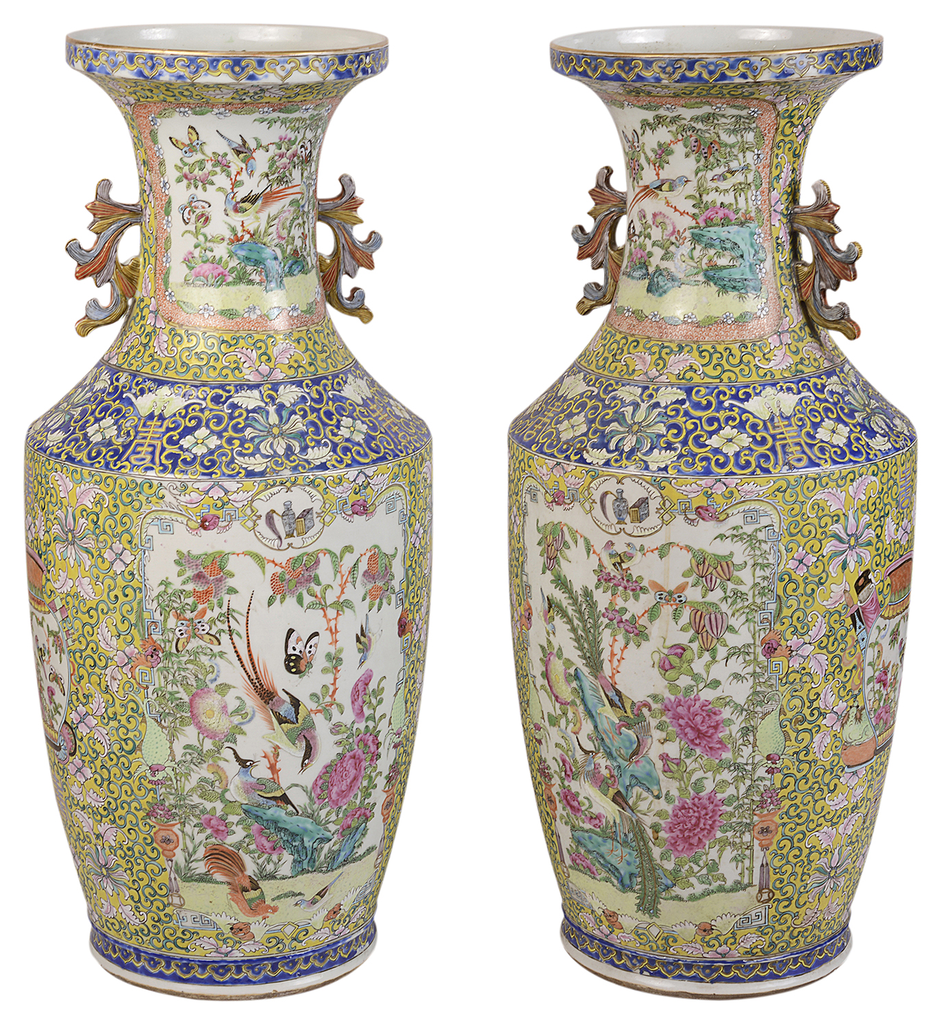 Pair of 19th Century Rose Medallion, Canton Vases / Lamps