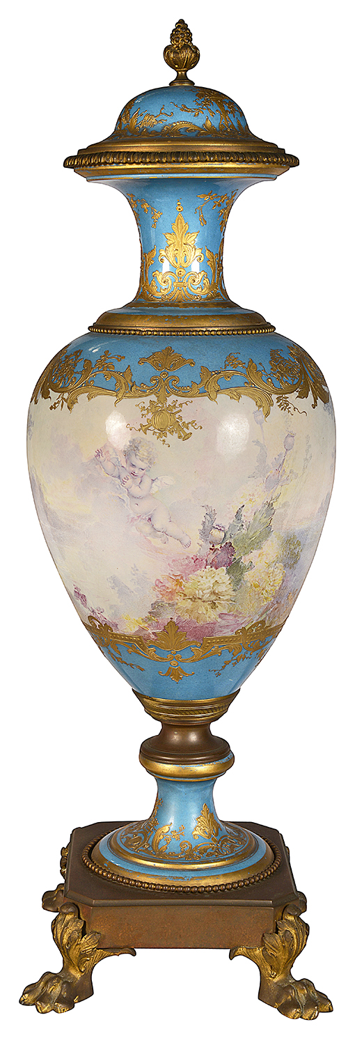 19th Century Sevres style lidded vase.