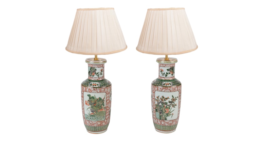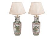 Pair 19th Century Chinese Famille Verte vases / lamps