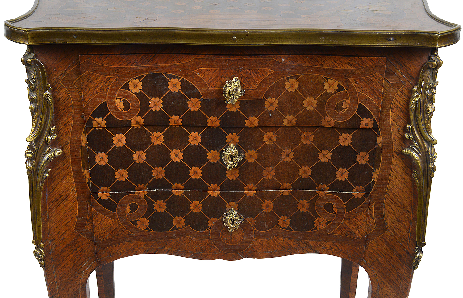 Signed; Paul Sormani (1817-1877), one the most important cabinetmakers of the 19th century, was born in Venice. Having trained as a cabinetmaker, he moved to Paris where he opened his first shop in 1847 specializing in furniture made in the Louis XV and Louis XVI style. When she decorated her palace, Empress Eugenie, the wife of Emperor Napoleon III, who was particularly fond of furniture in the 18th century styles, engaged Sormani to create spectacular pieces to compliment her period examples. Sormani was able to meet the Empress’s high standards with the excellent quality of the cabinet work, bronze mounts, use of lacquer and unusual marbles. Sormani’s firm was a maker of fine “meubles de luxe”, (deluxe furniture) whose work was described in the 1867 Exposition Universelle catalogue as “toute sa production revele une qualite d’execution de tout premier ordre”. He received a medal of premiere classe at the Exposition Universelle of 1855, followed by another medal at the 1862 exposition in London The workshop also made eclectic furniture in contemporary styles. Paul Somani.