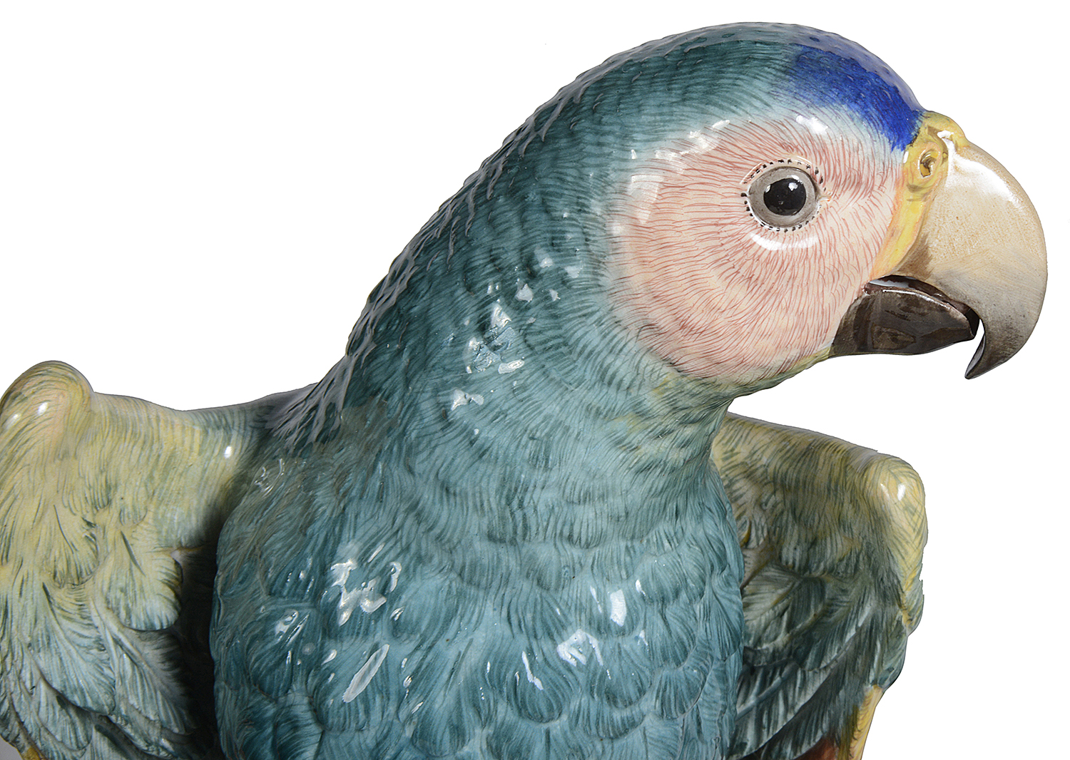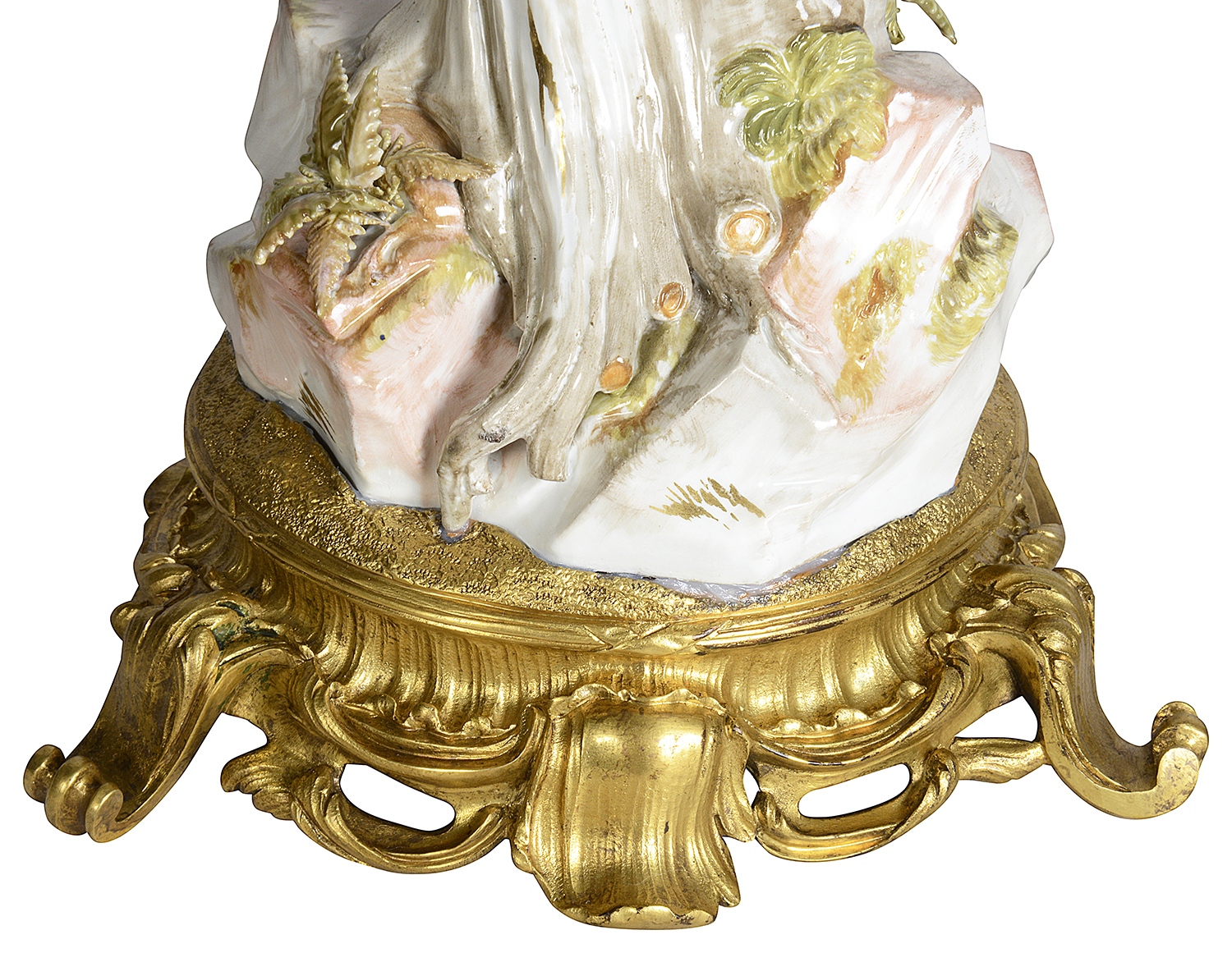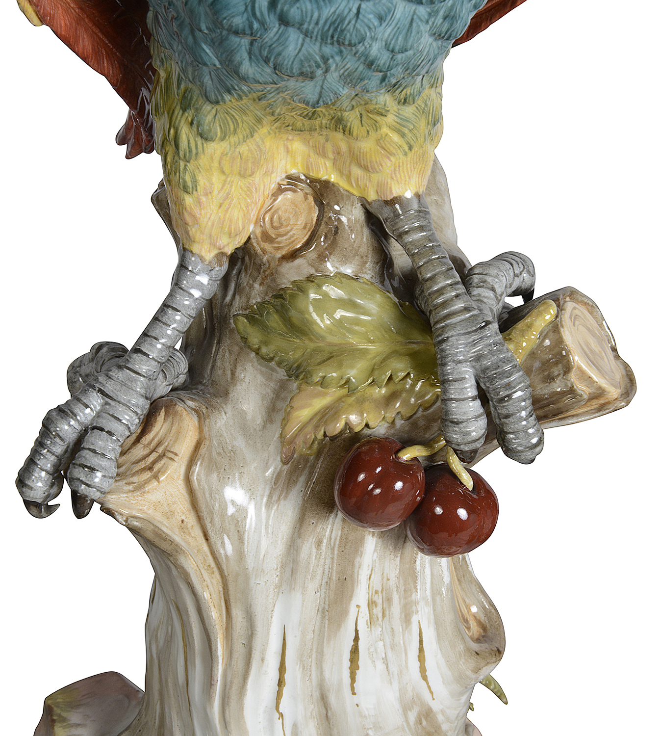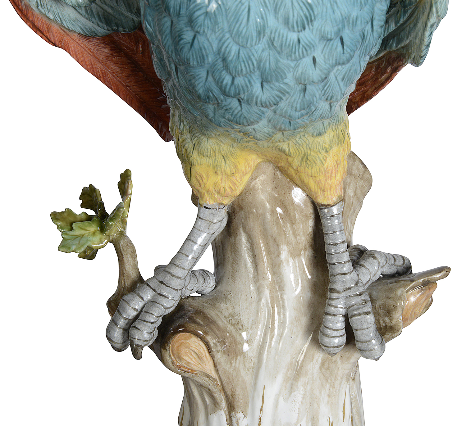 Important pair of 19th Century, ormolu mounted Meissen Parrots. 49cm