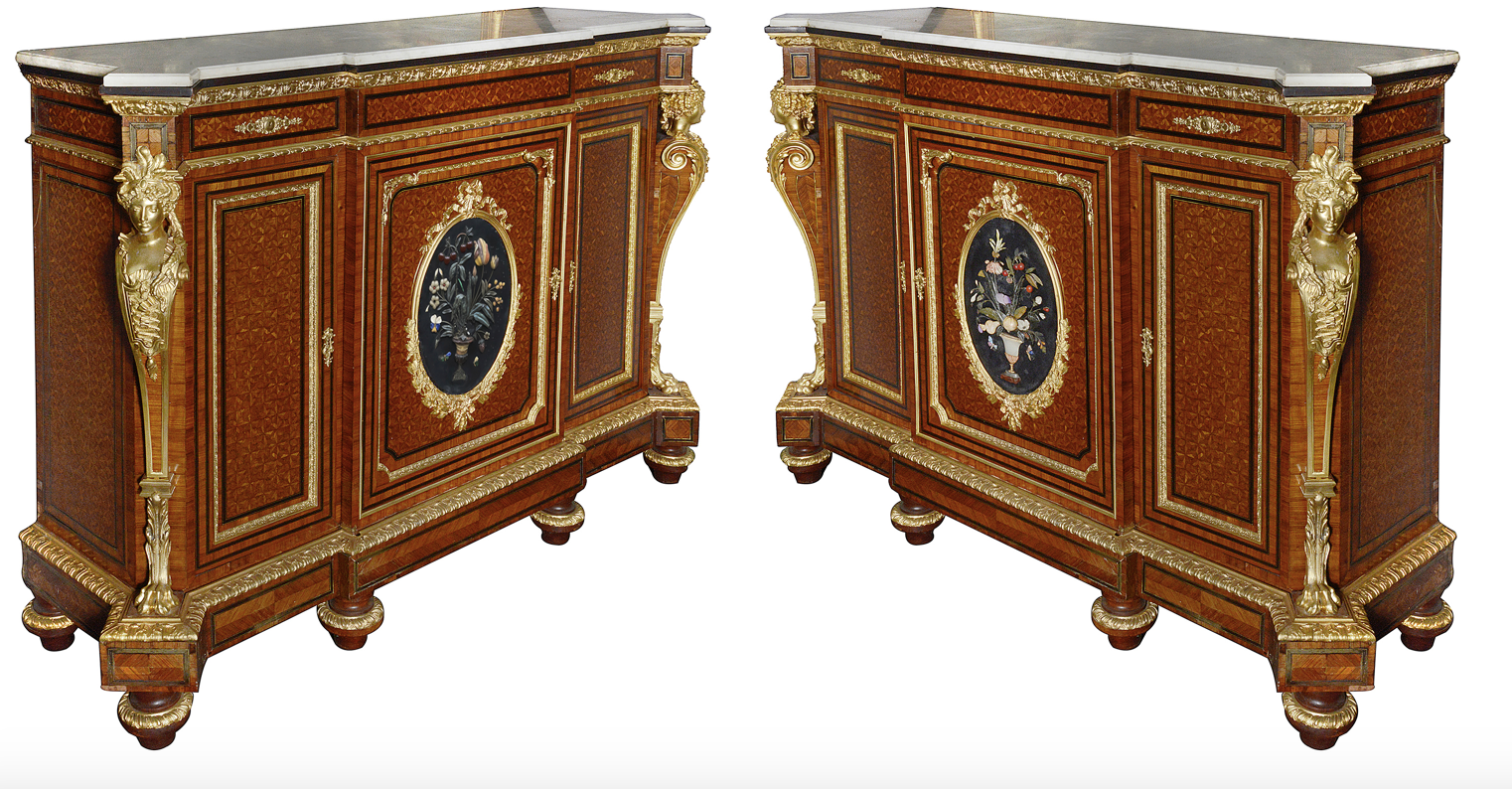 Pair Petra dura inlaid side cabinets, 19th Century.