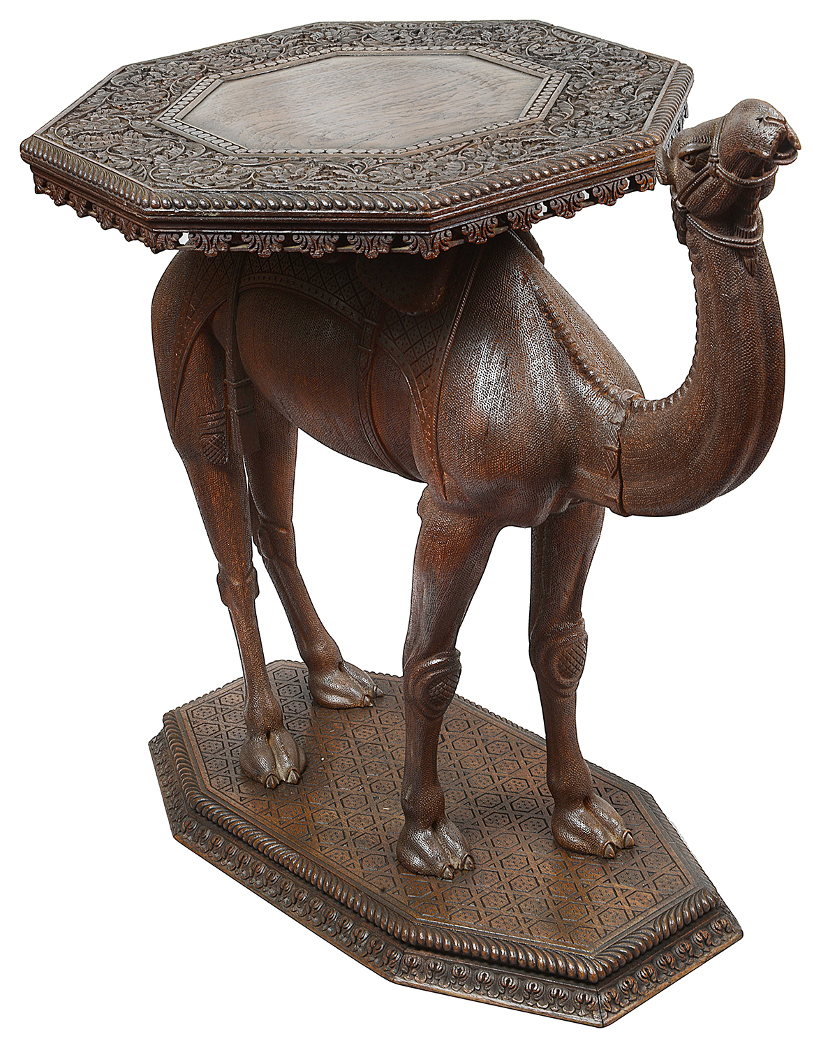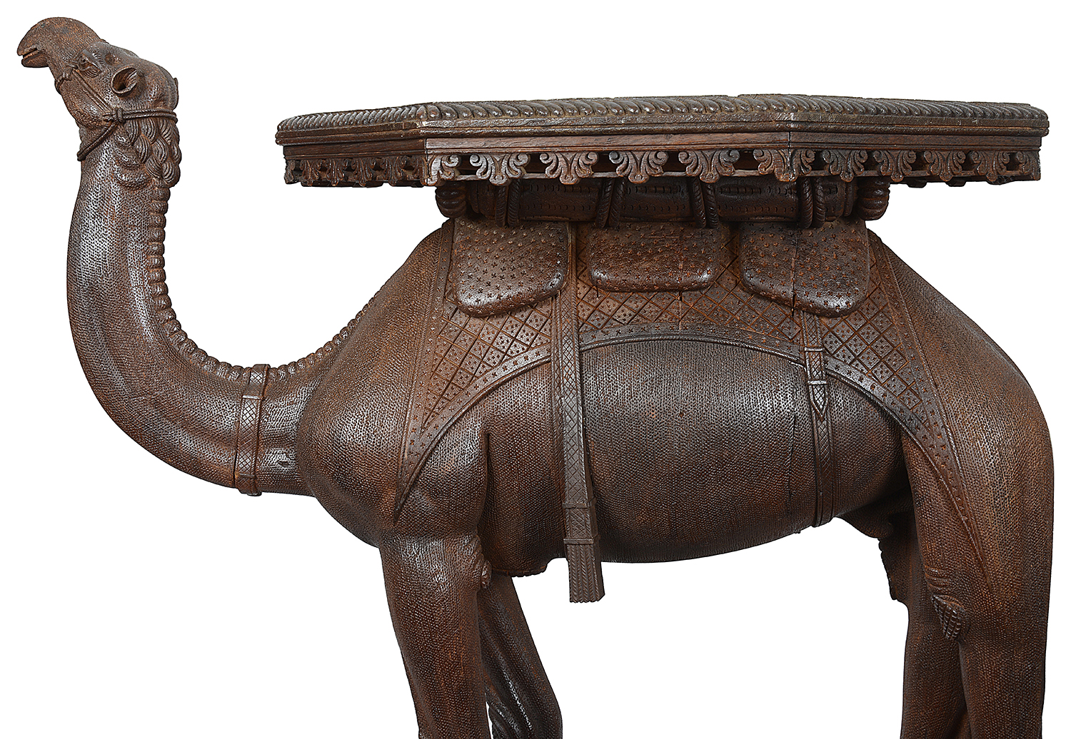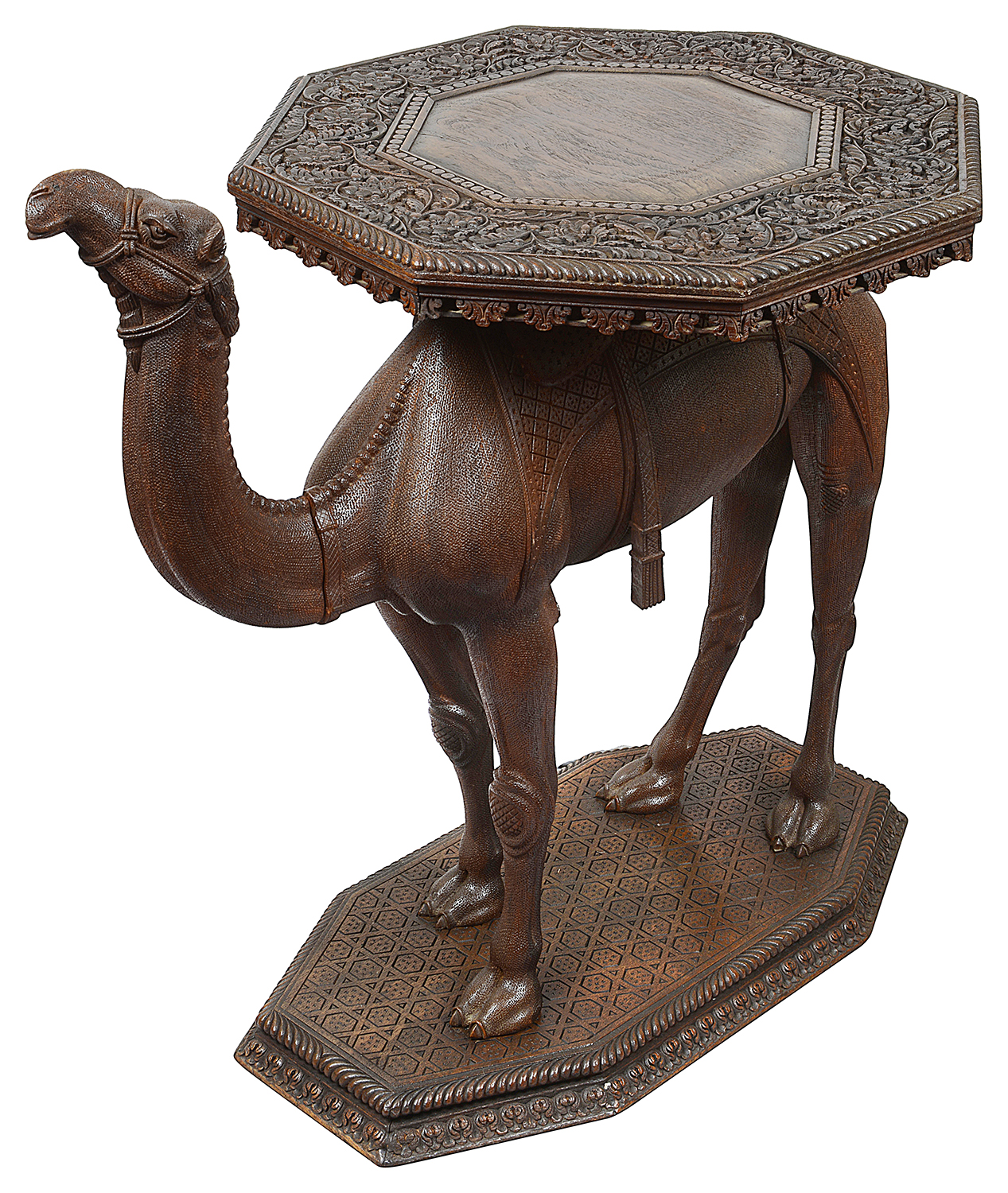 Rare pair Anglo Indian carved Camel tables, circa 1840