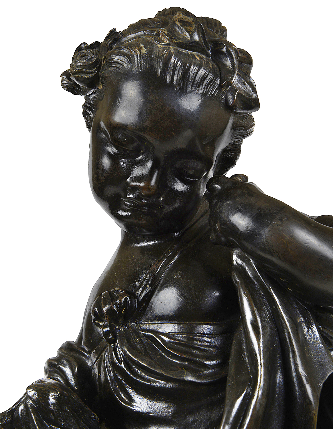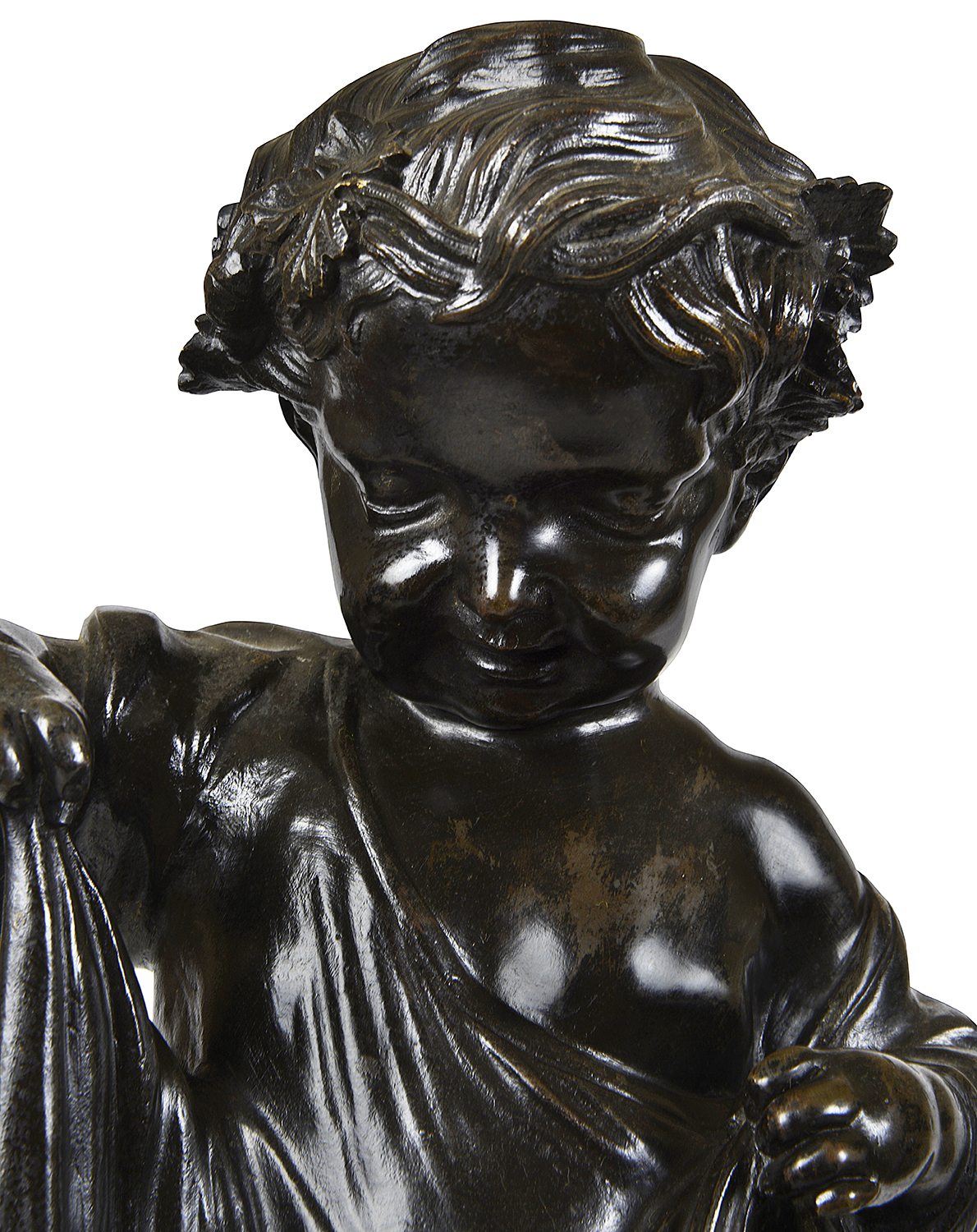 Pair classical bronze statues of children gathering grapes, 19th Century.