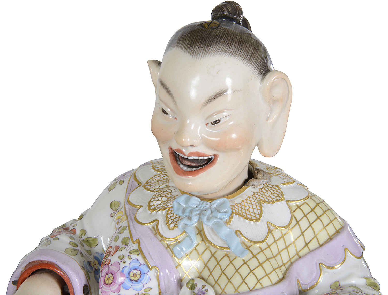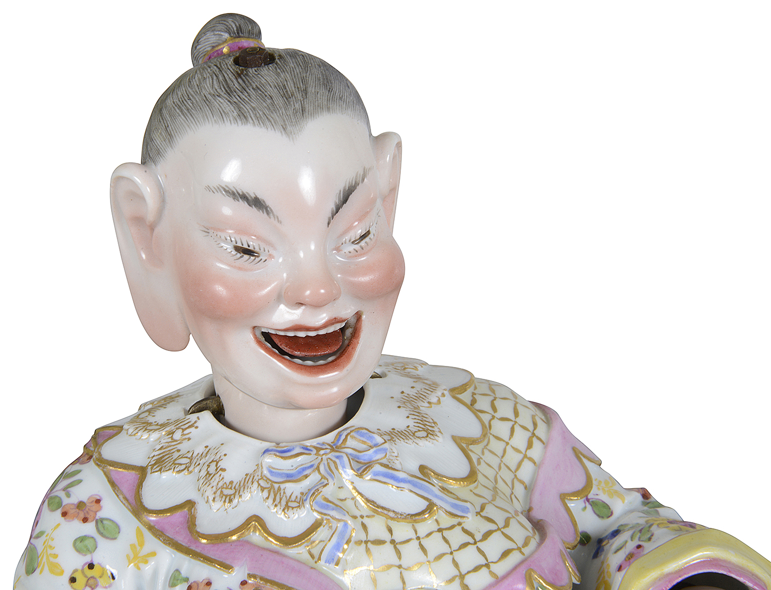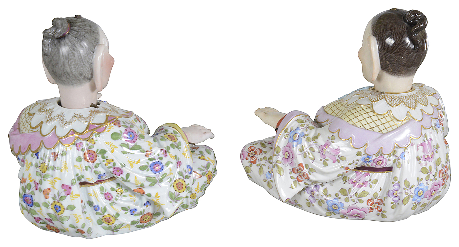 Pair late 19th Century Meissen porcelain nodding Pagoda figures. Each with wonderful bold hand painted decoration.