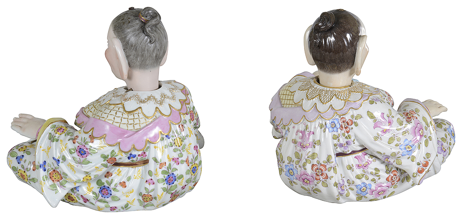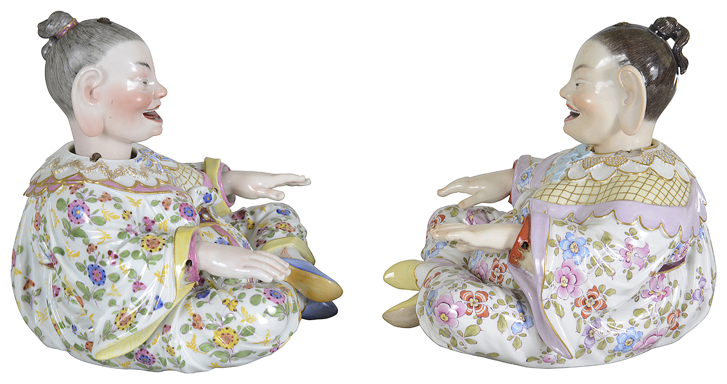 Pair Meissen nodding Pagodas, C19th 17cm high