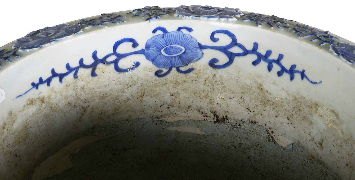 Pair Japanese Blue + White jardiniere, circa 1890