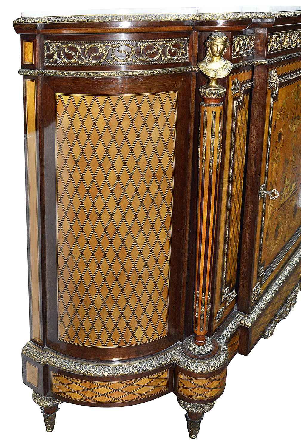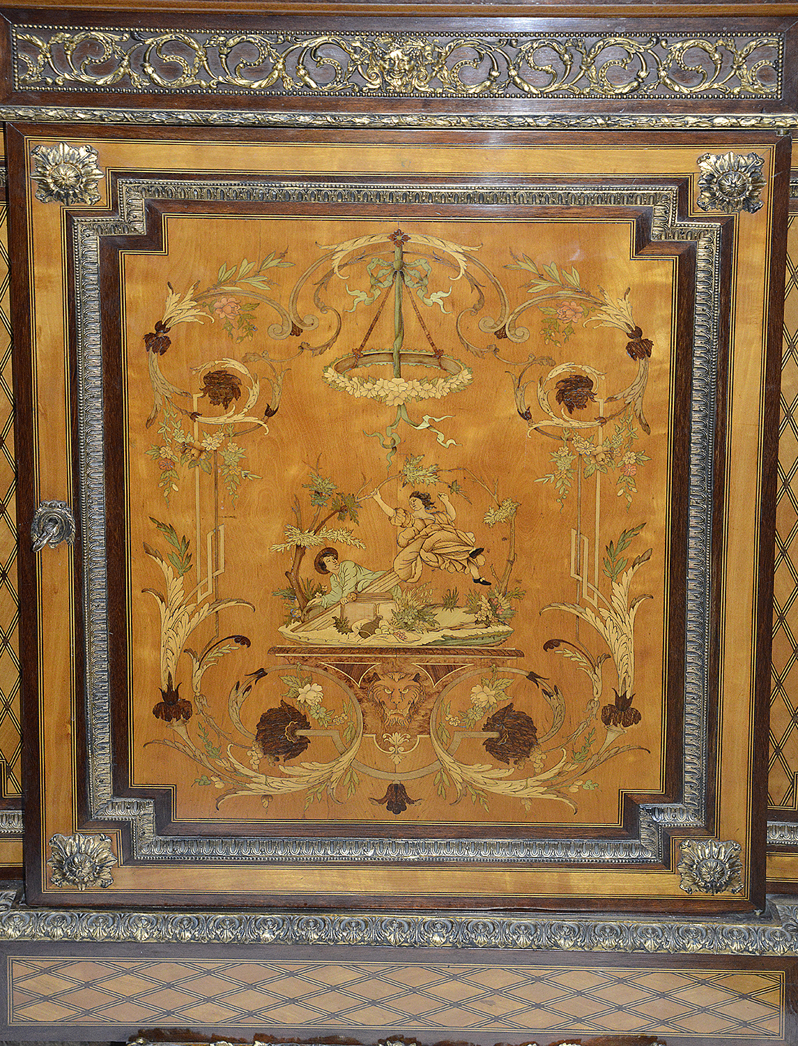 Louis XVI style marquetry inlaid side cabinet, 1880.