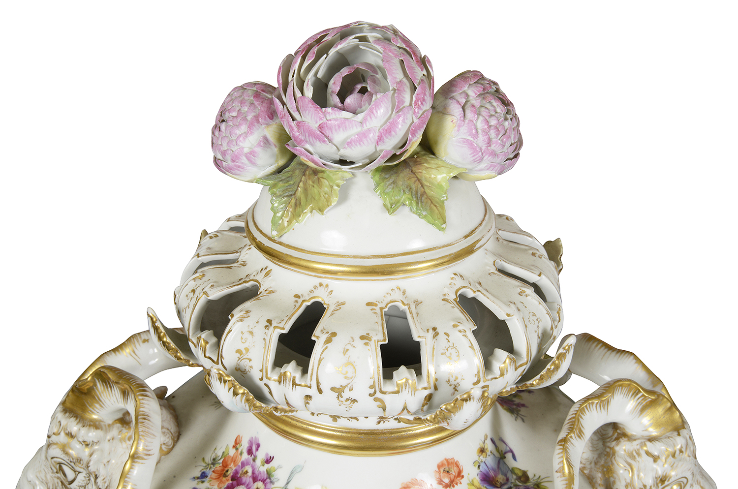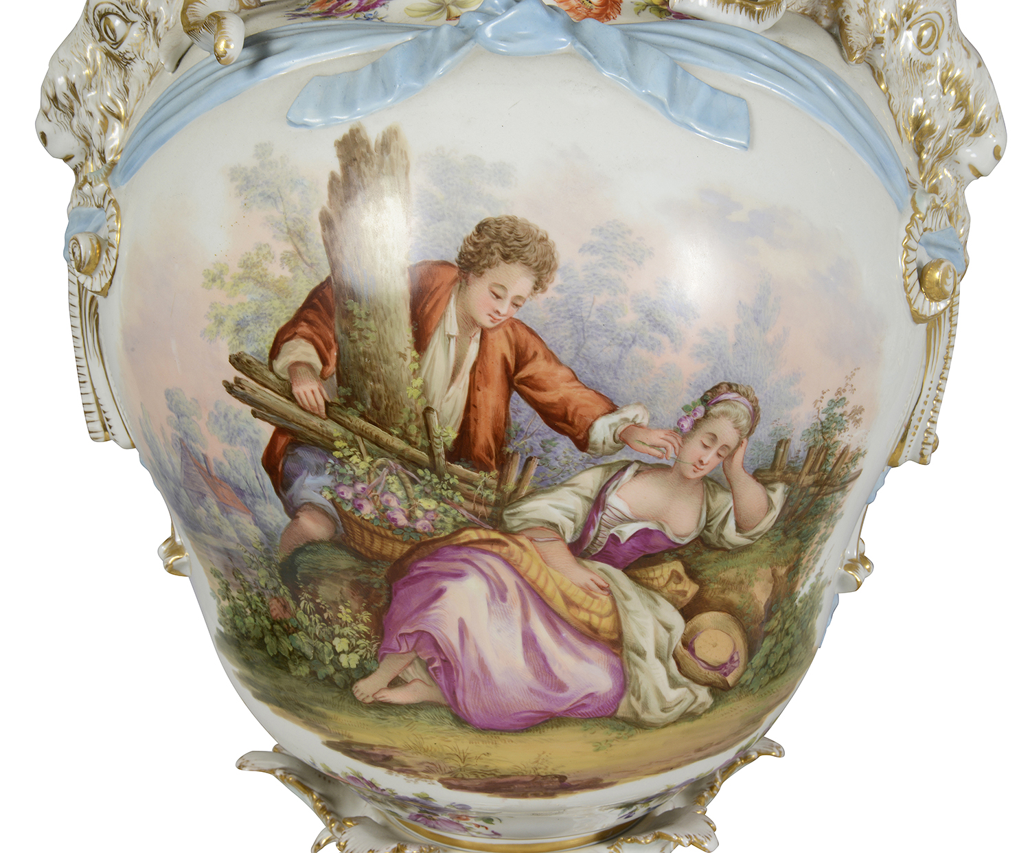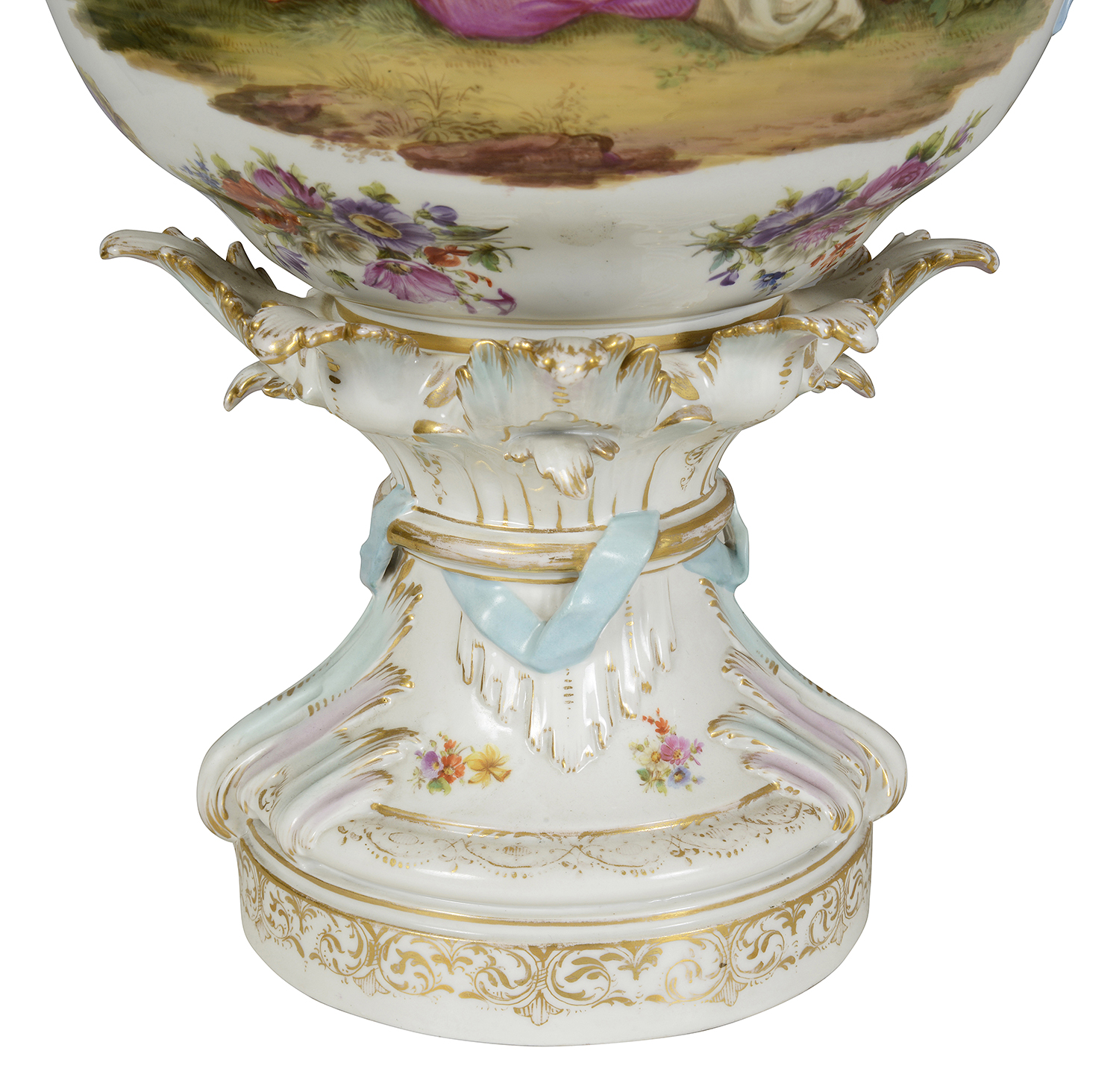 Large pair 19th Century Berlin lidded vases, 67cm high