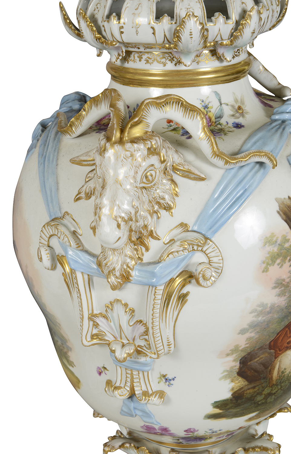 Home > Large pair 19th Century Berlin lidded vases, 67cm high