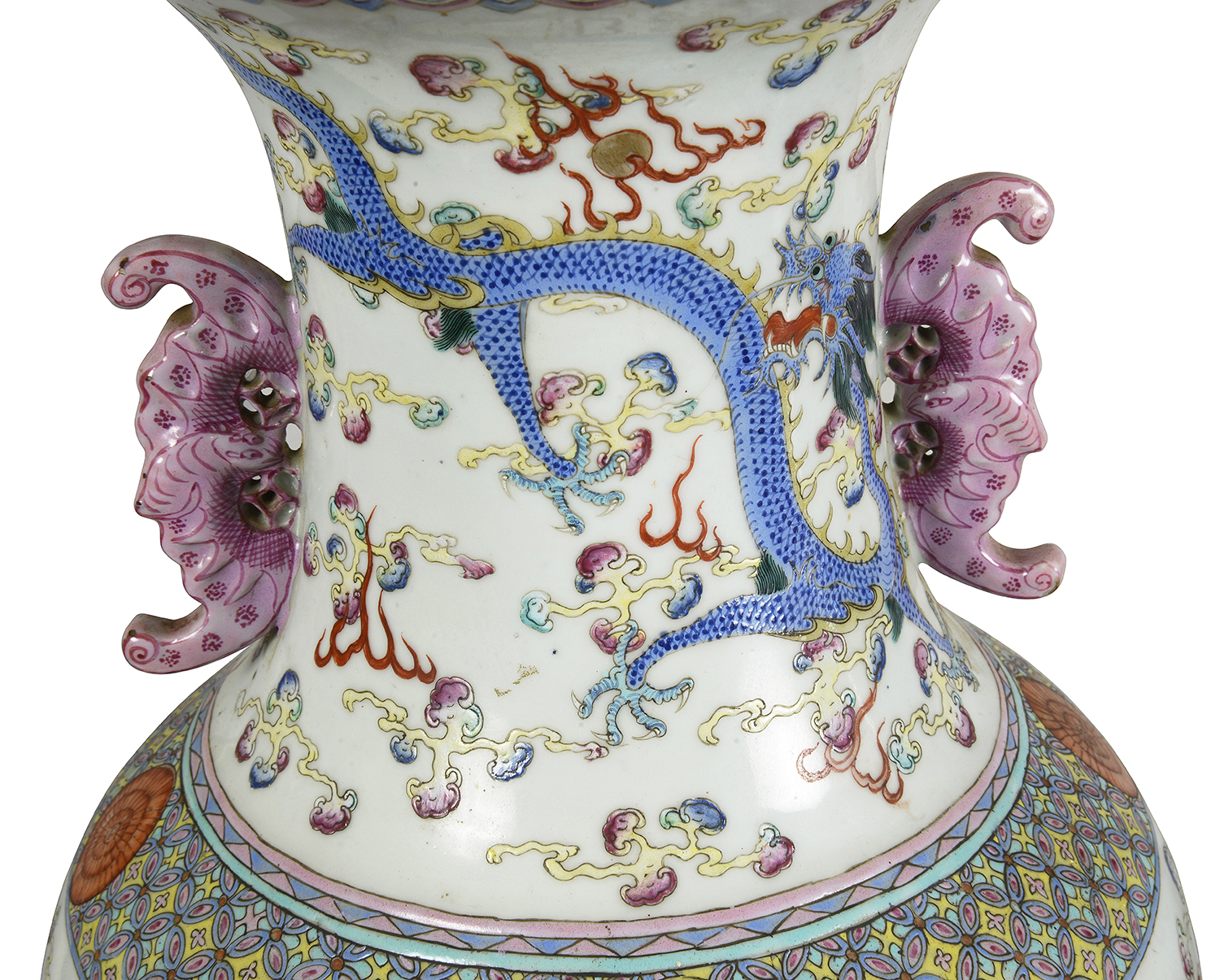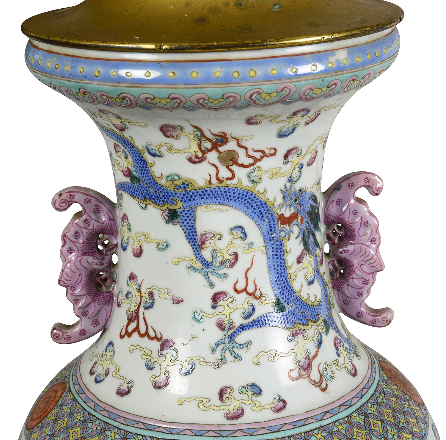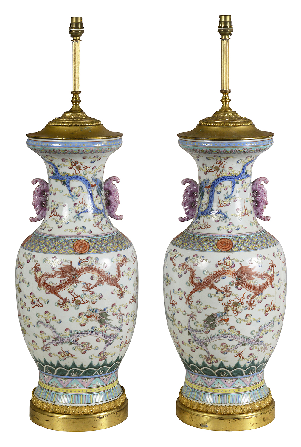 Home > Pair Chinese famille Rose vases / lamps, C19th.
