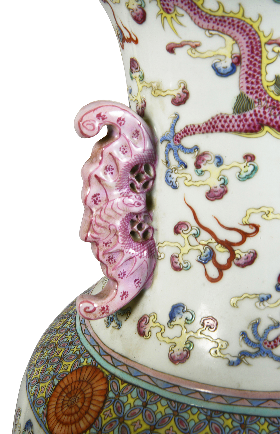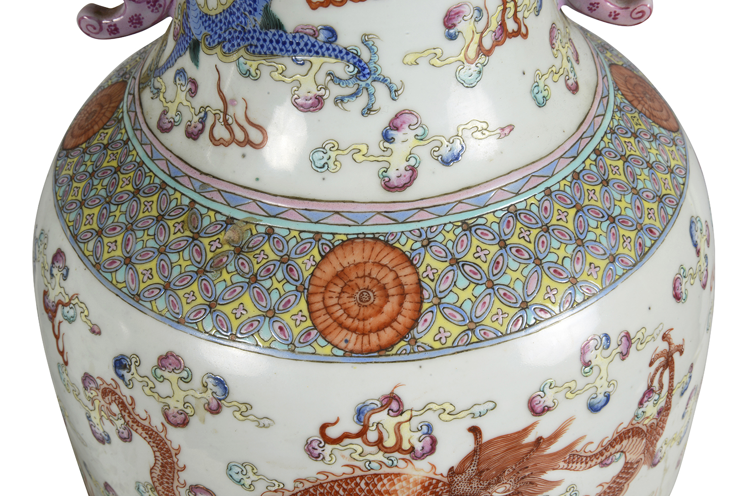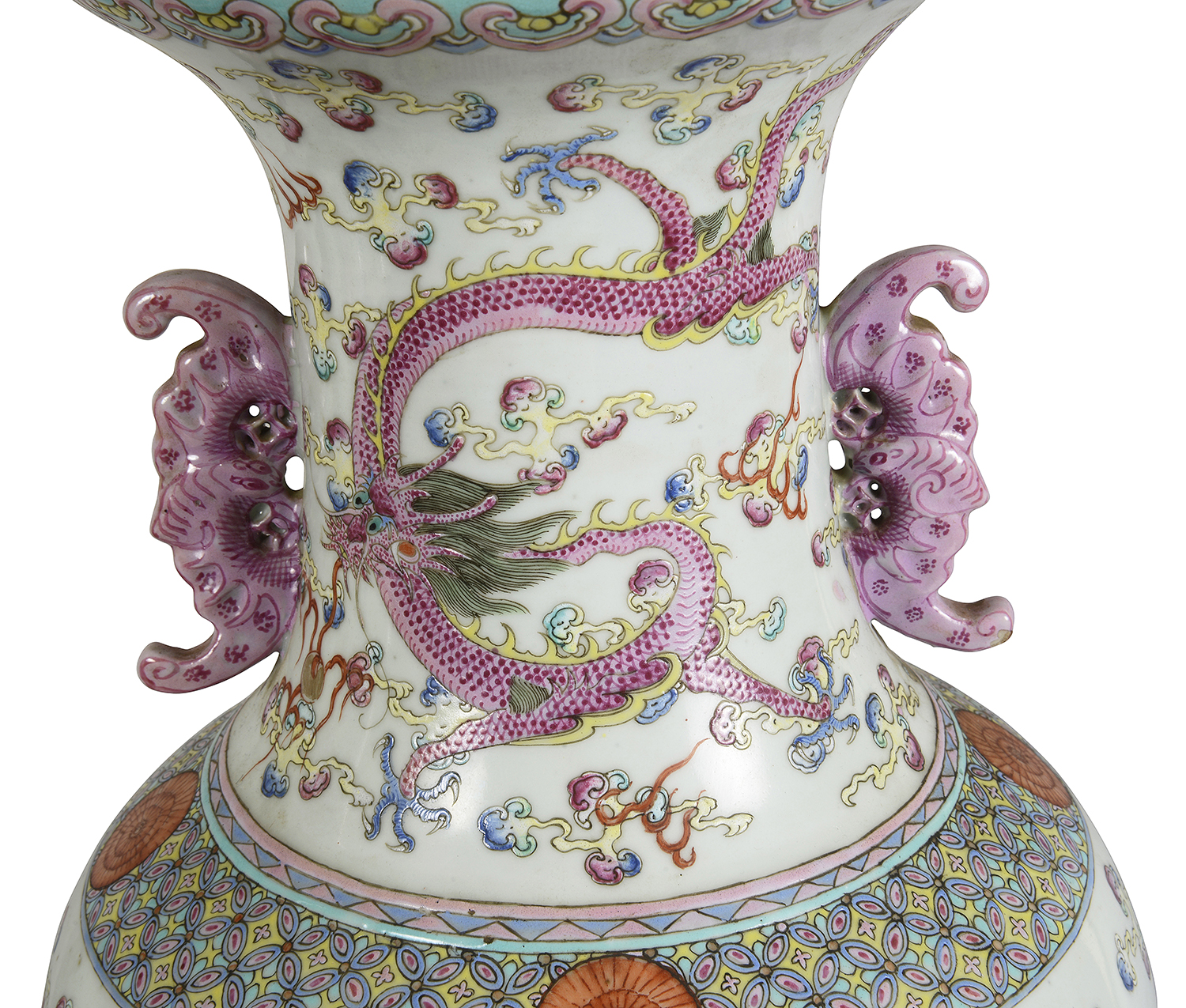 Home > Pair Chinese famille Rose vases / lamps, C19th.