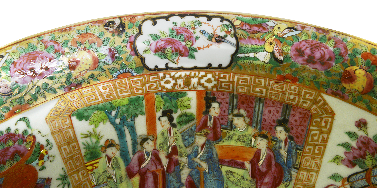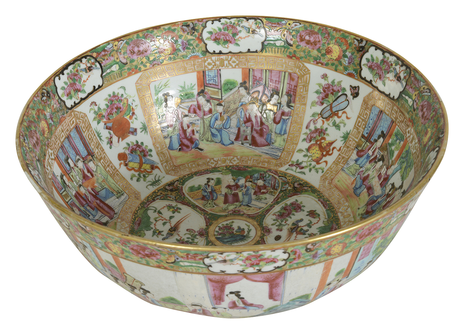 Large Chinese Canton / Rose medallion bowl, 16" diameter, C19th