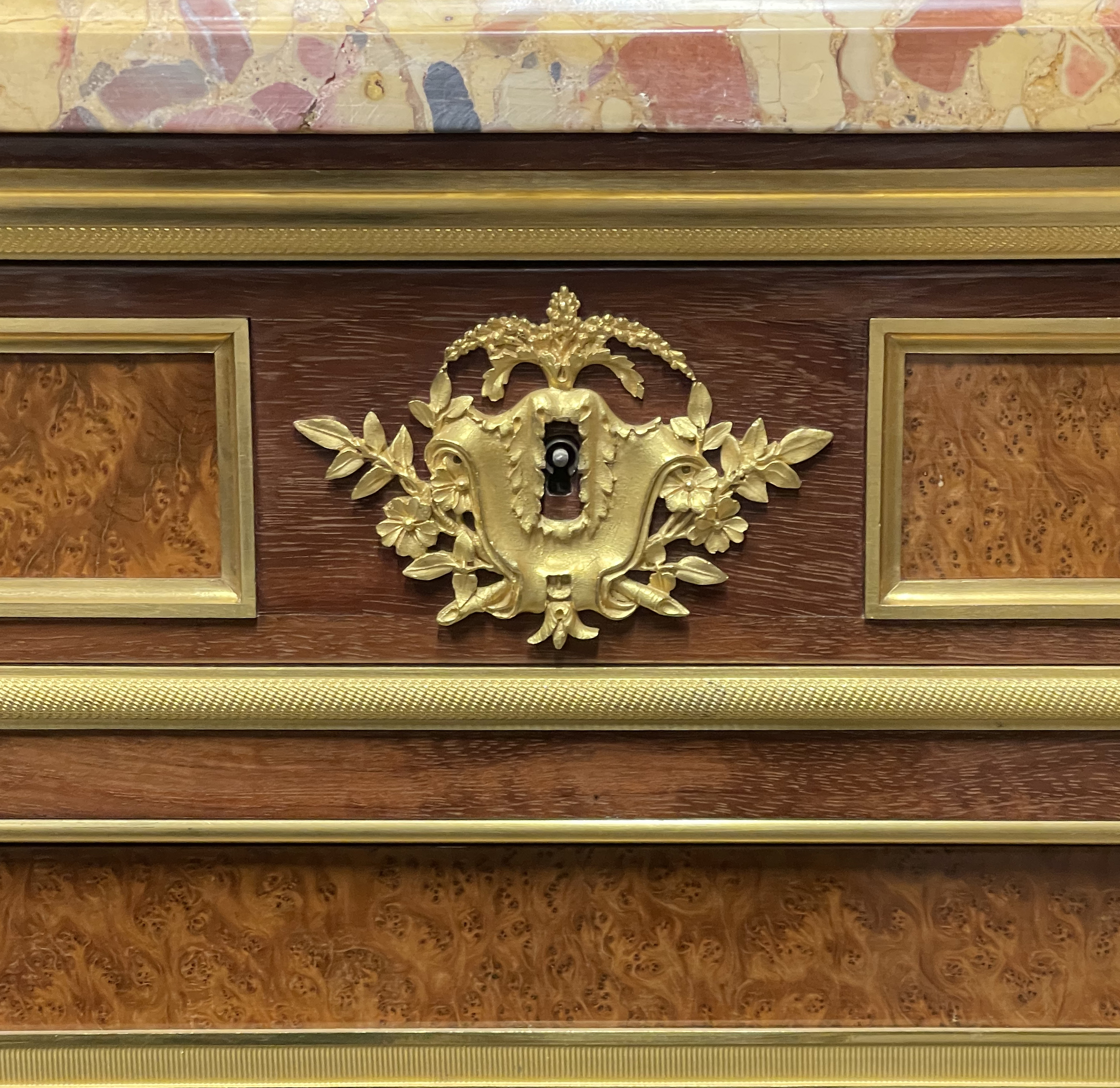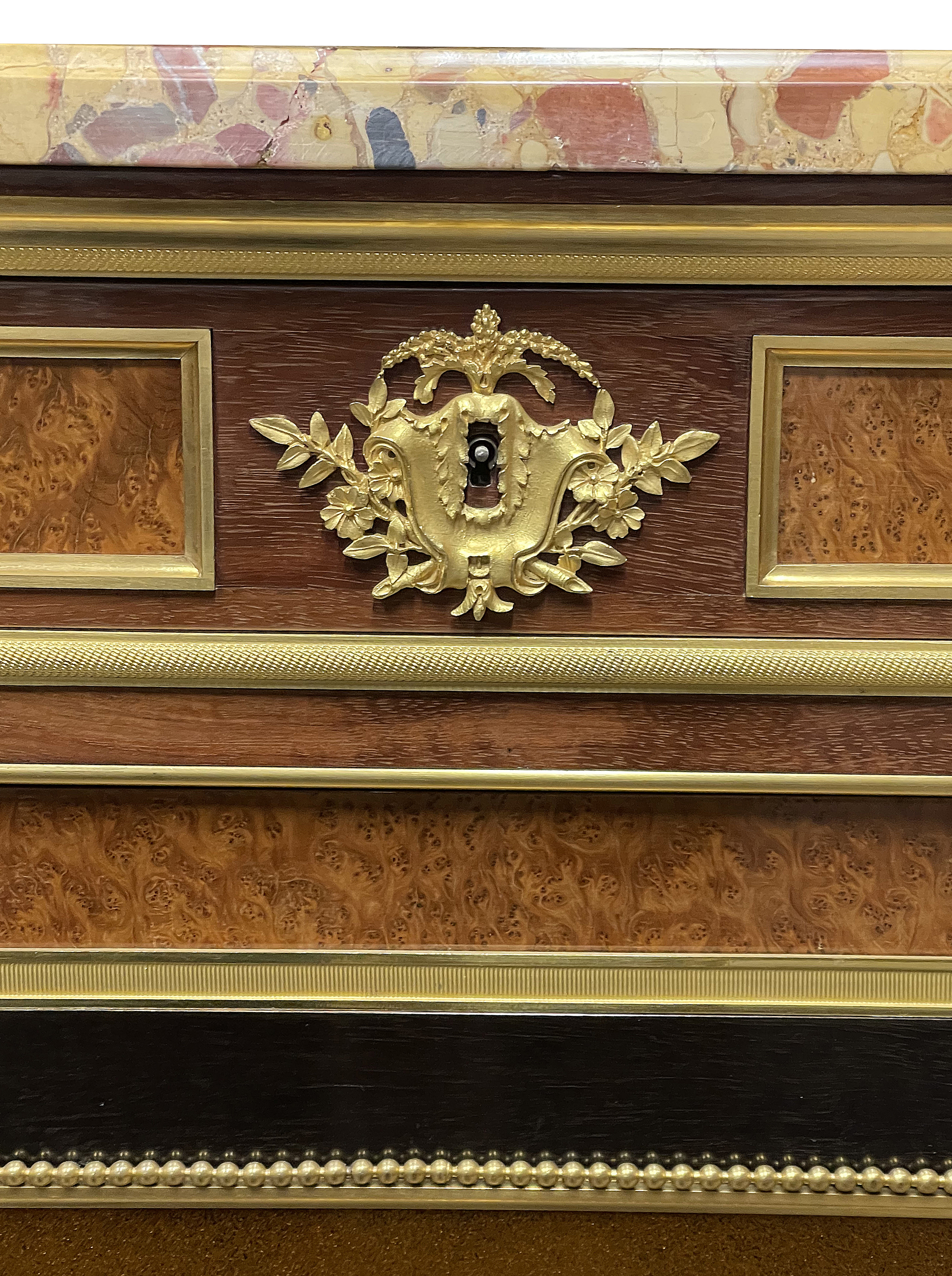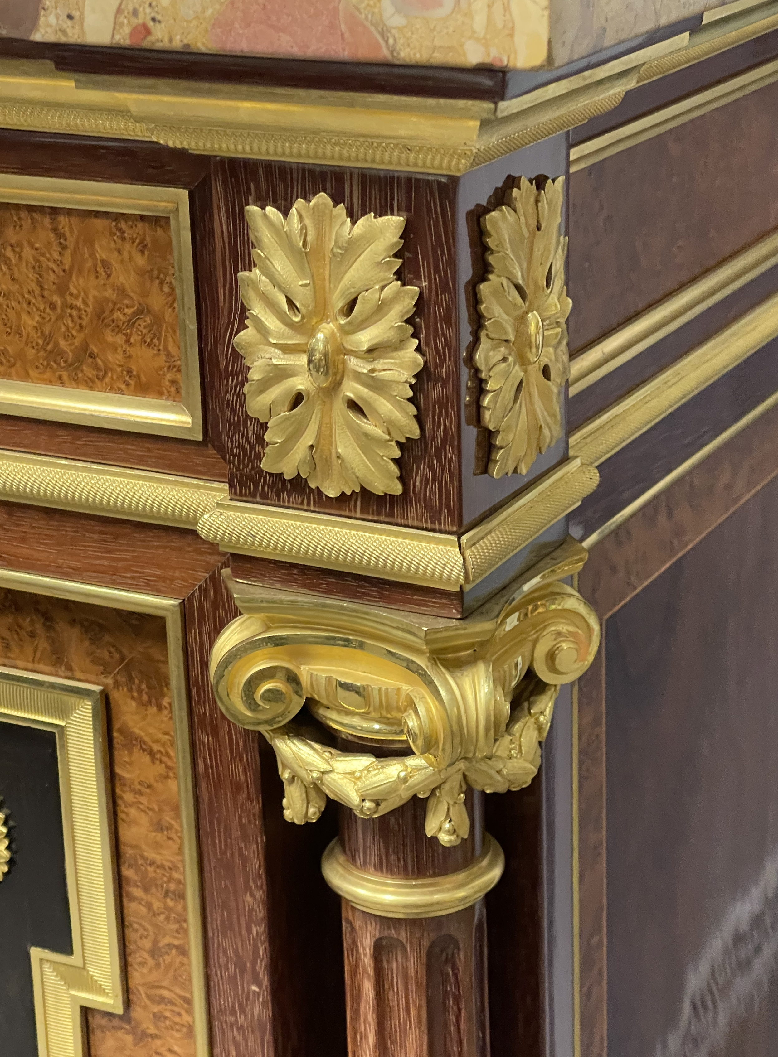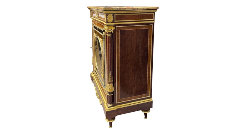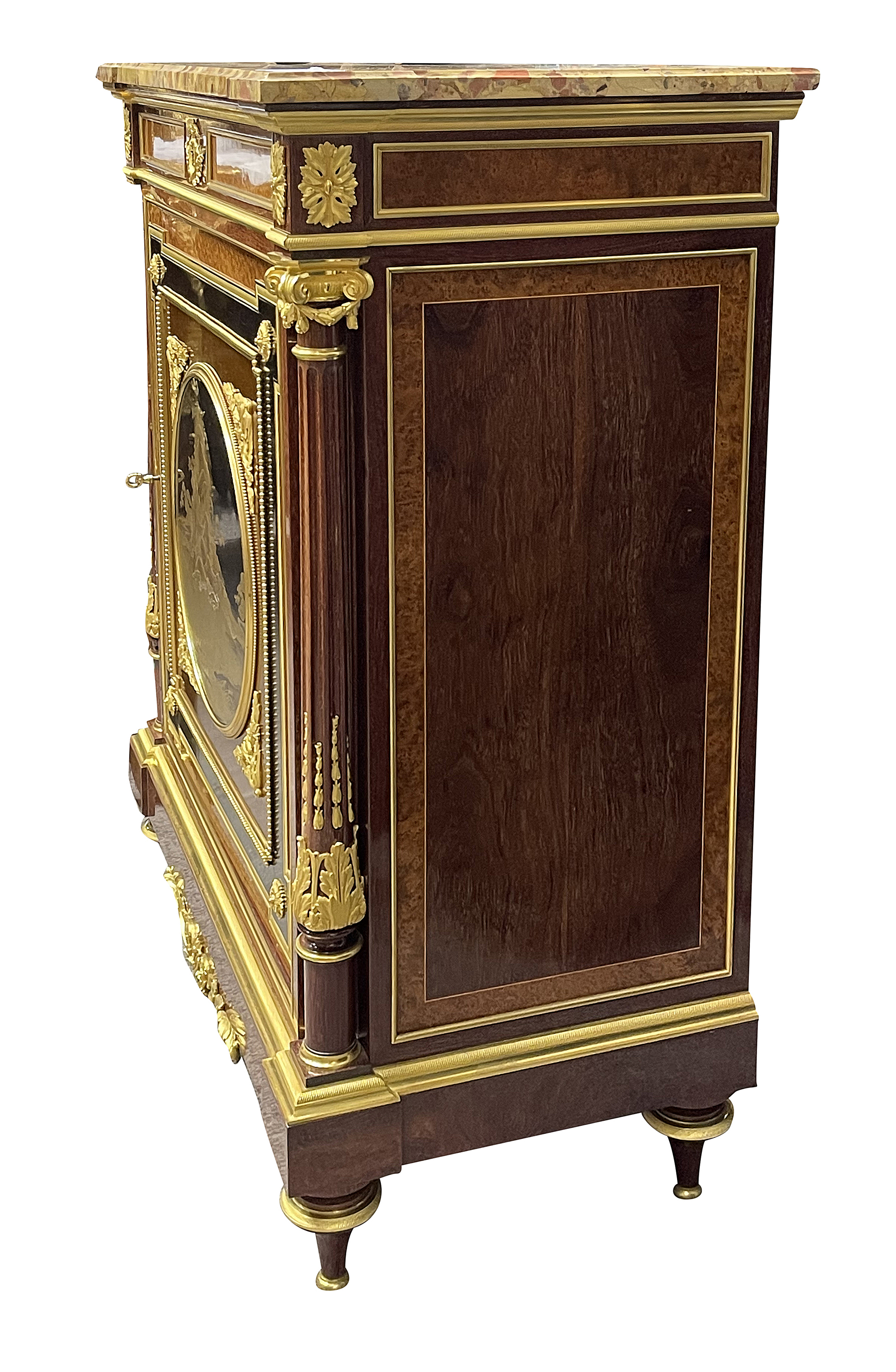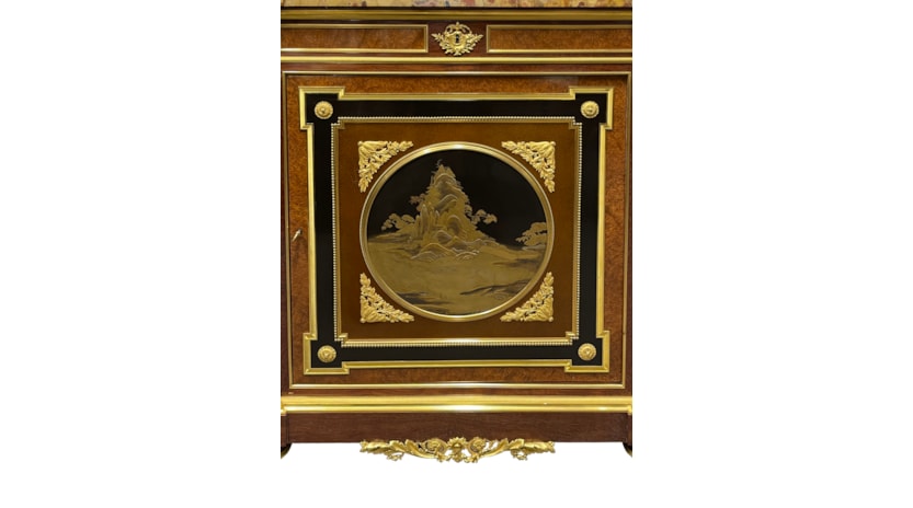 The renowned company of Beurdeley was one of the most prestigious furniture makers of the 19th Century. The business was founded in 1818 by Jean Beurdeley (1772-1853), who established the firm’s first workshop in Paris. After Jean’s death, his son Louis-Auguste-Alfred (1808-1882) took over the business, channelling his energies into producing furniture inspired by the Louis XVI and Louis XVIII styles. Louis-Auguste-Alfred quickly established himself as one of the most skilled cabinet makers (ébenistes) of the 19th Century, receiving medals at both the 1855 and the 1867 Expositions Universelles in Paris. This success won Louis-Auguste-Albert a host of extremely important clients, including the French Emperor Napoleon III and his wife Empress Eugénie.