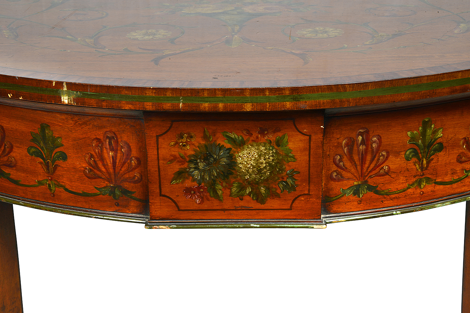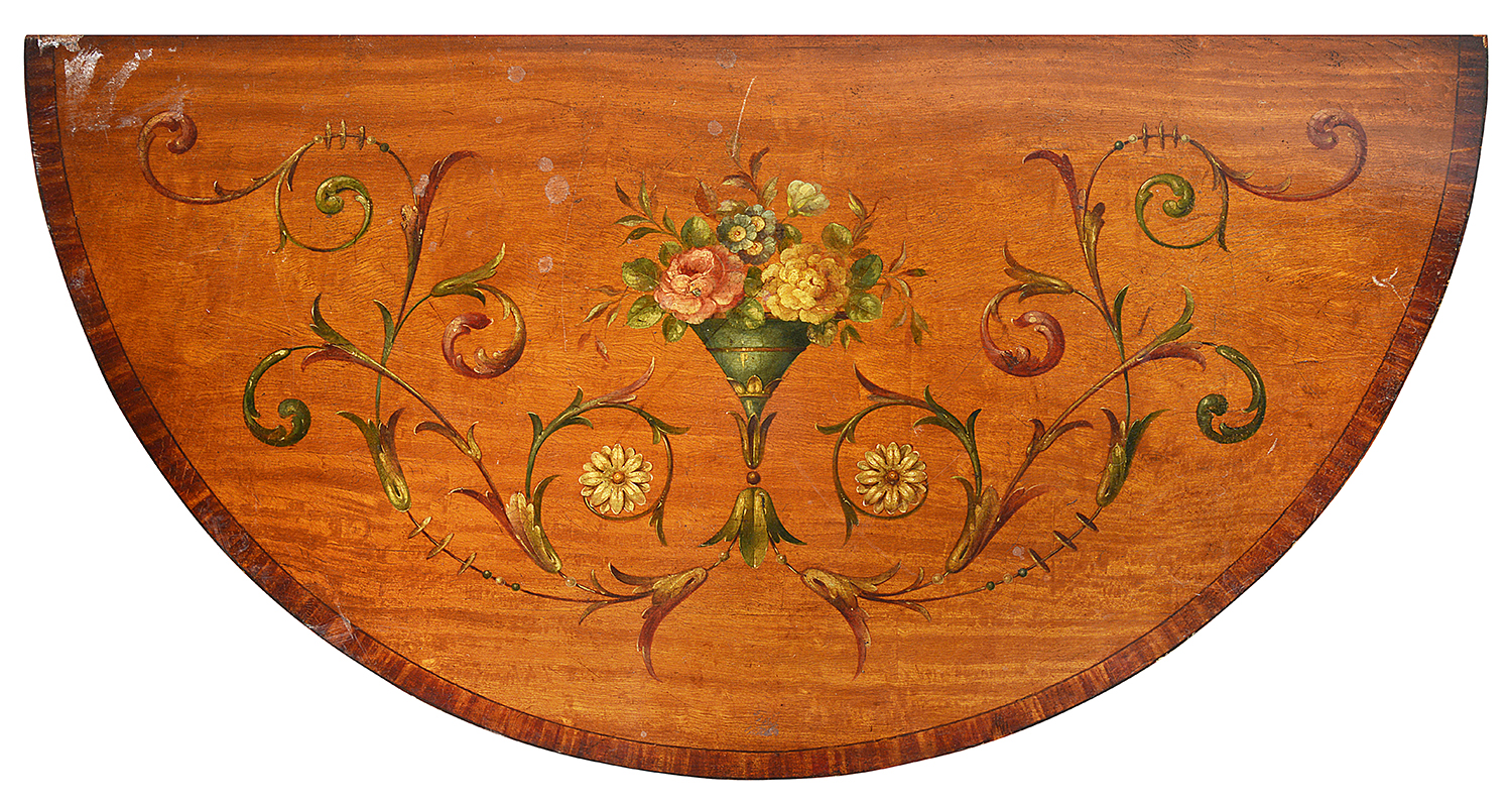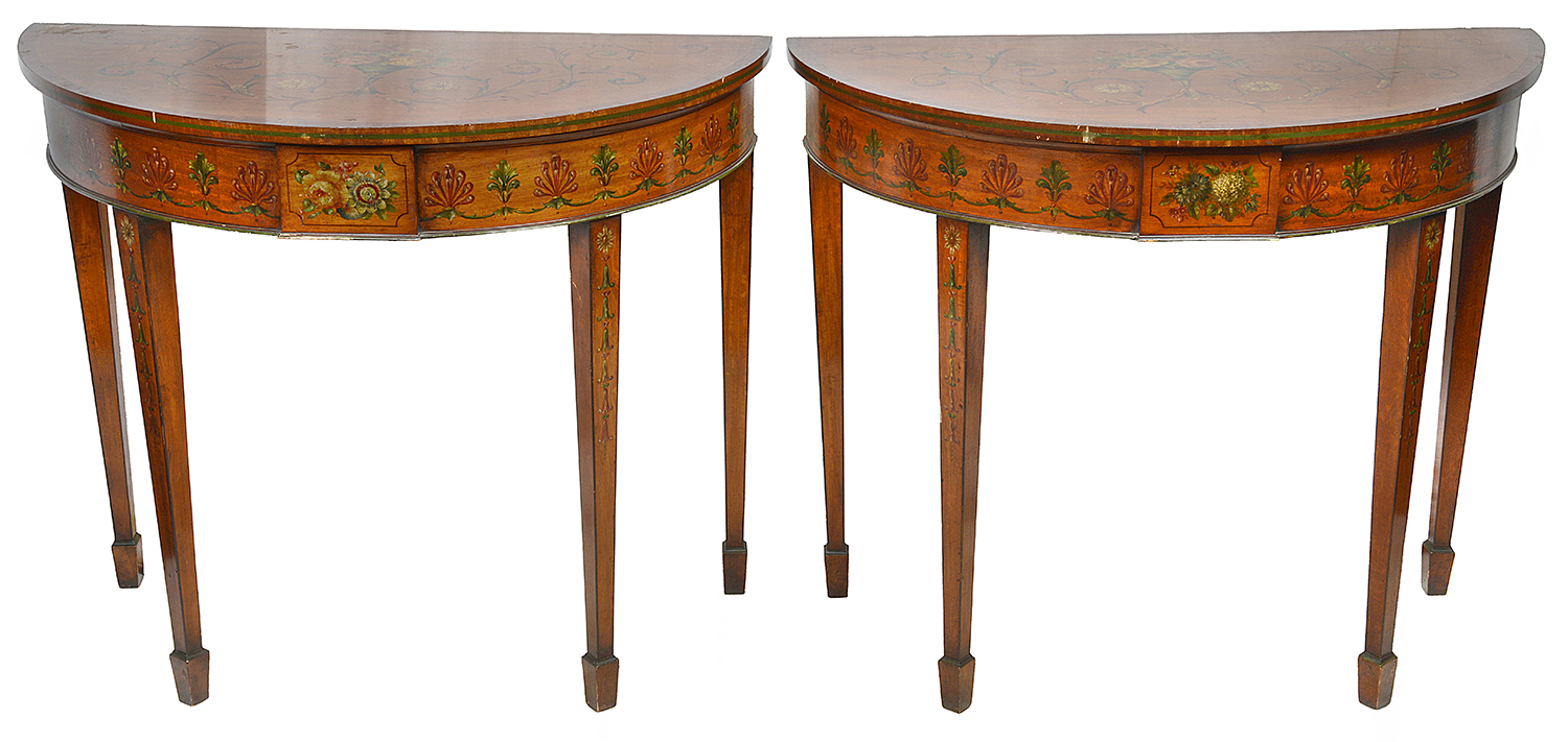 Pair Satinwood Demi lune Console / side tables, circa 1900