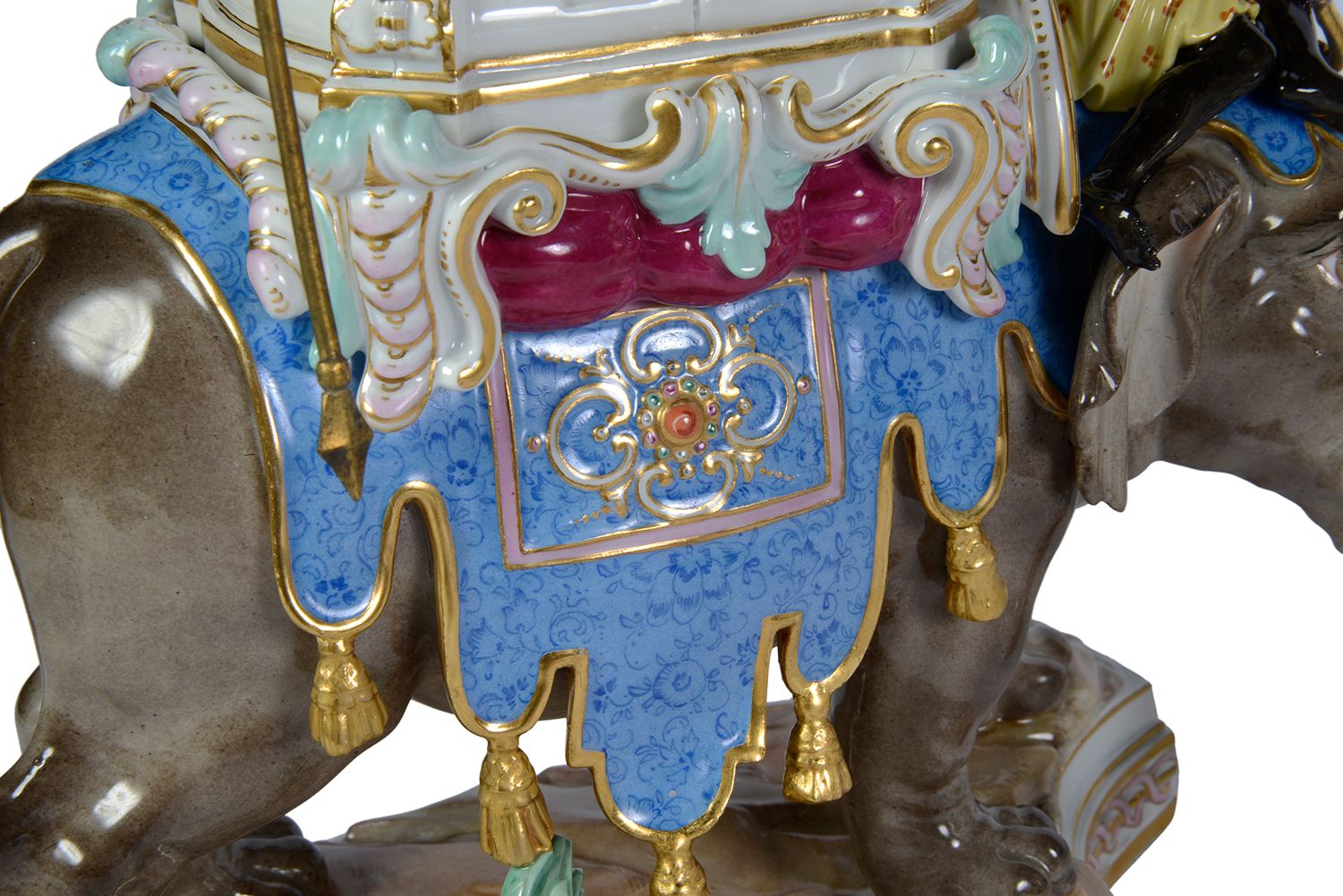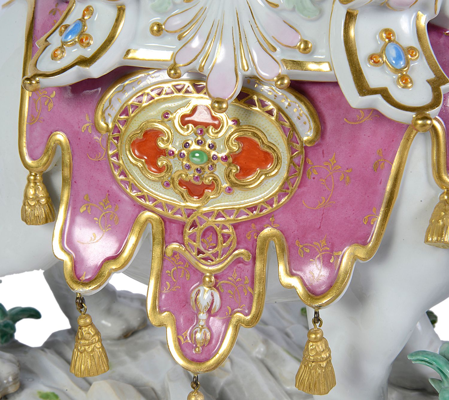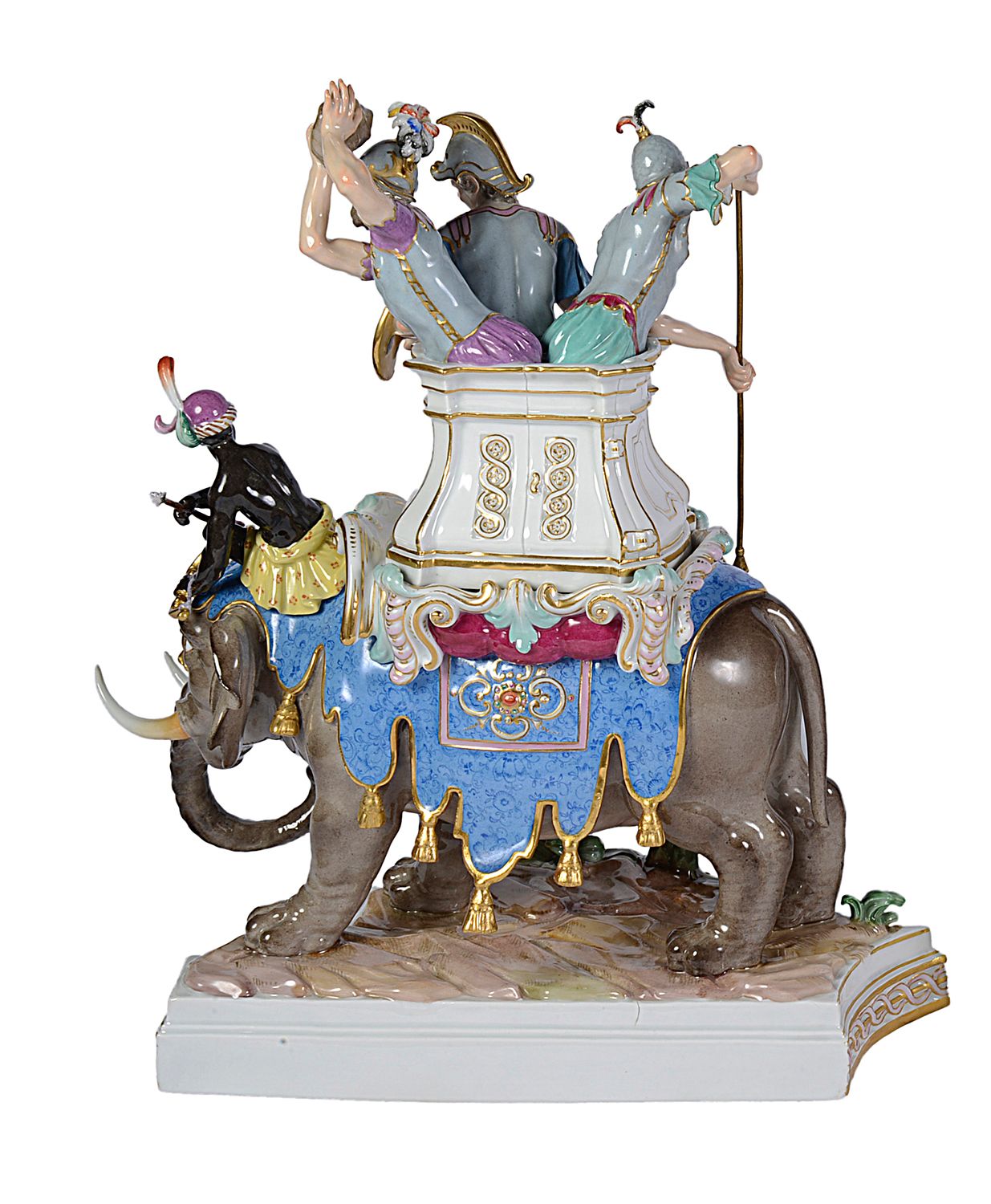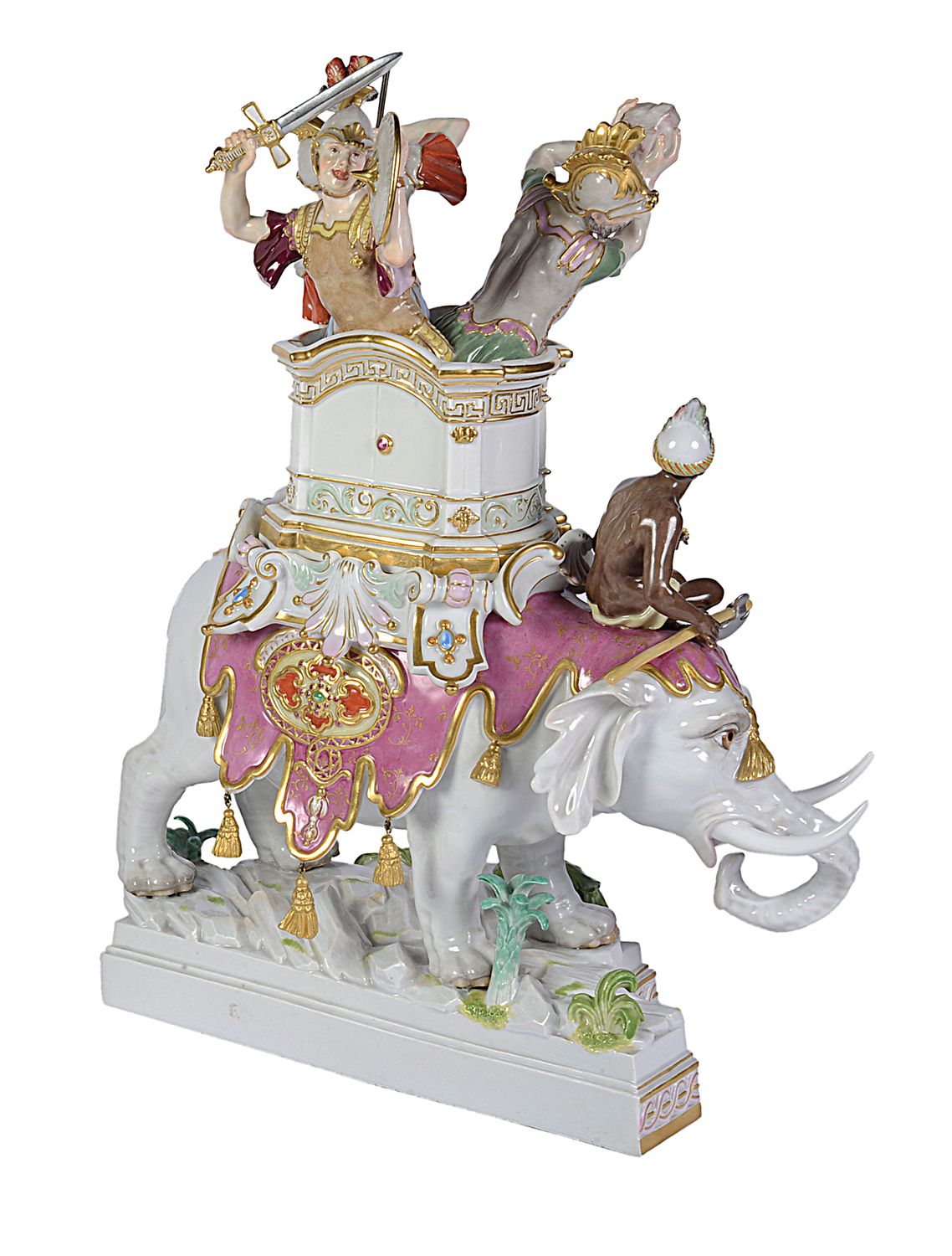 Rare pair of Meissen porcelain Elephants, depicting Alexander the Great concurring India, C19th