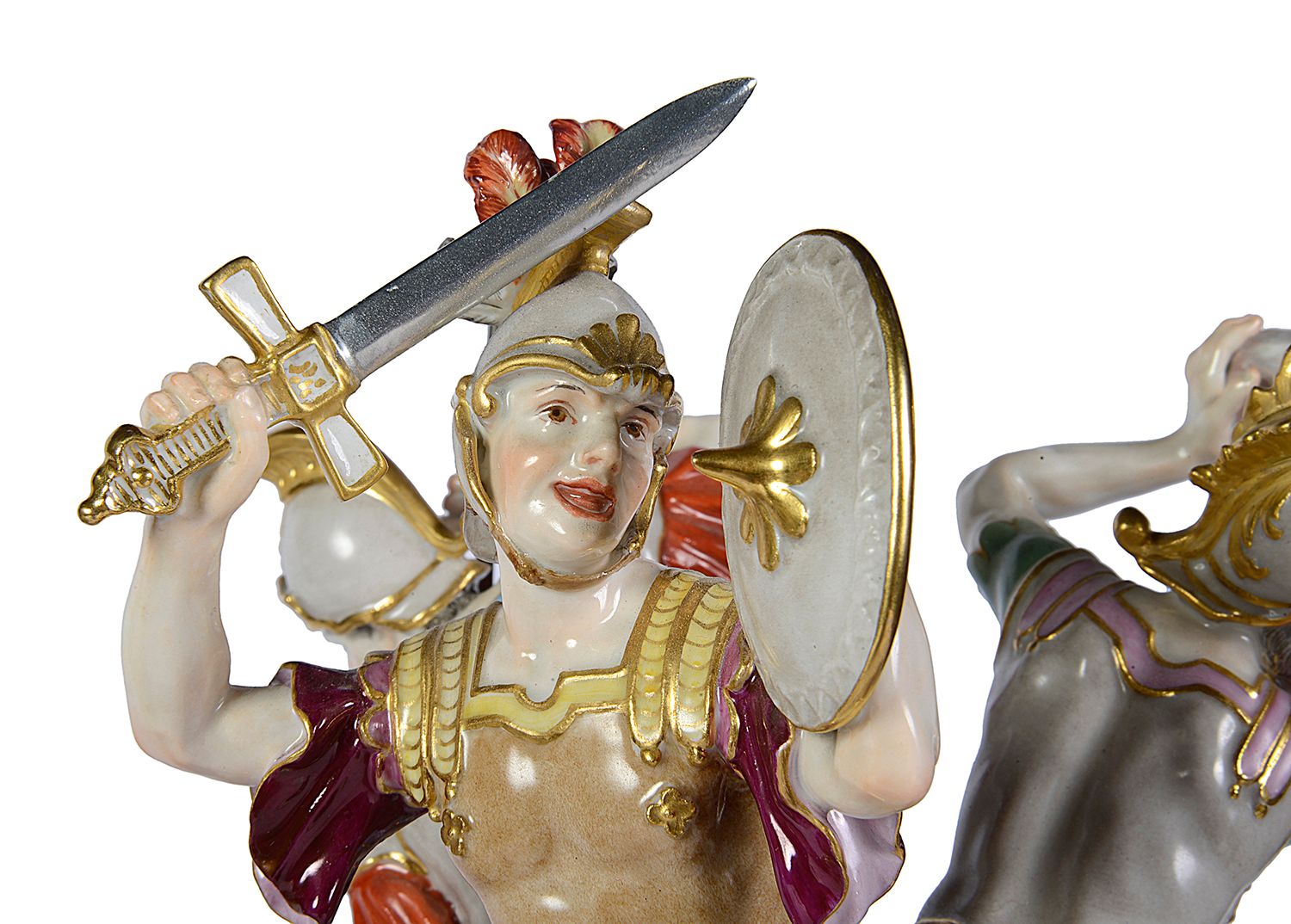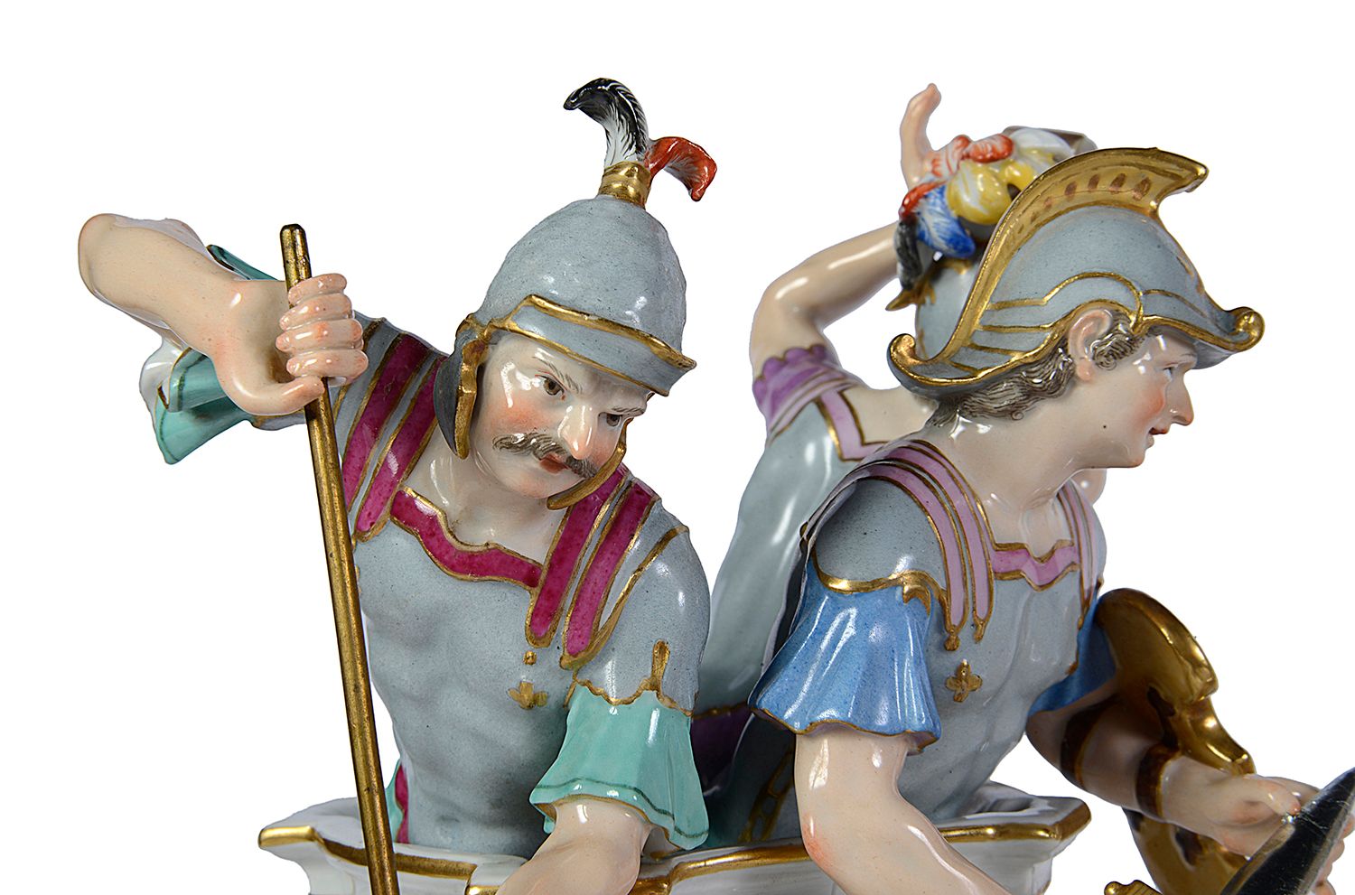 These pieces not only represent a historical narrative but also embody the artistic excellence of the Meissen factory, marked by the blue crossed swords underglaze mark.