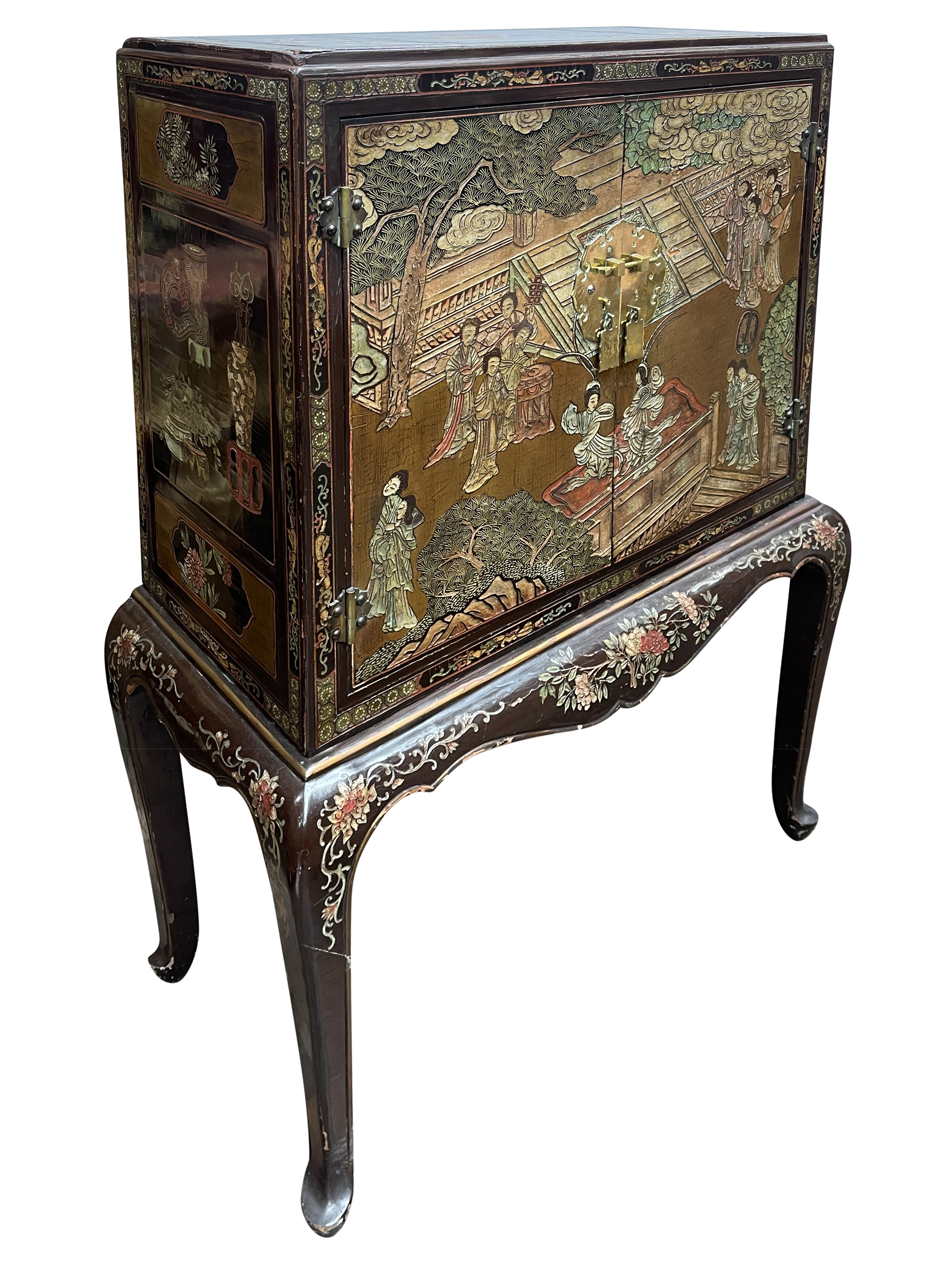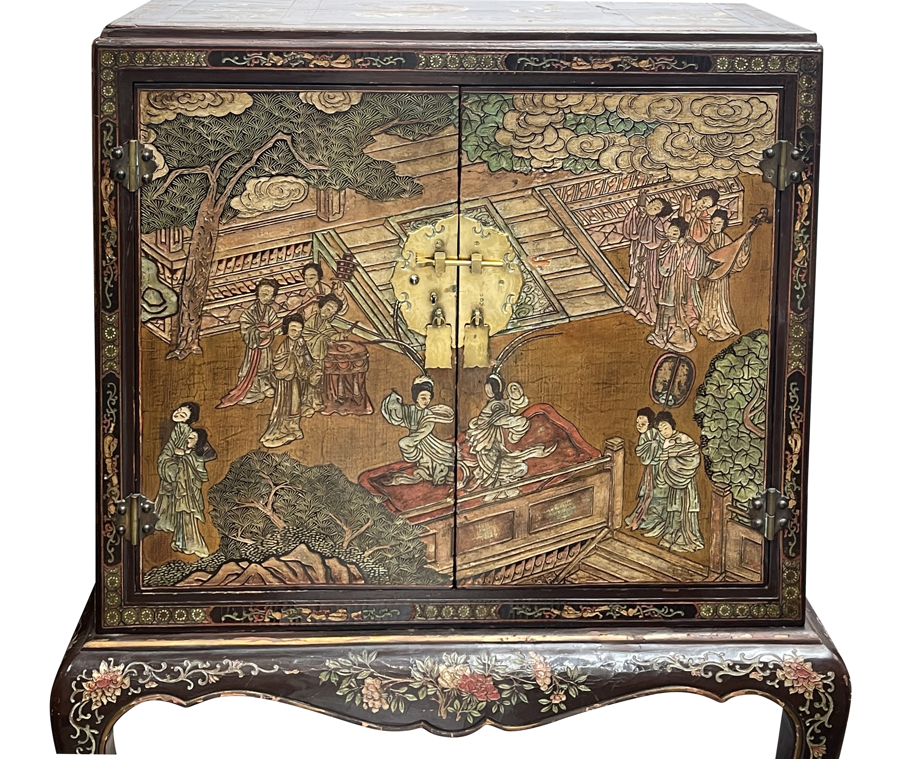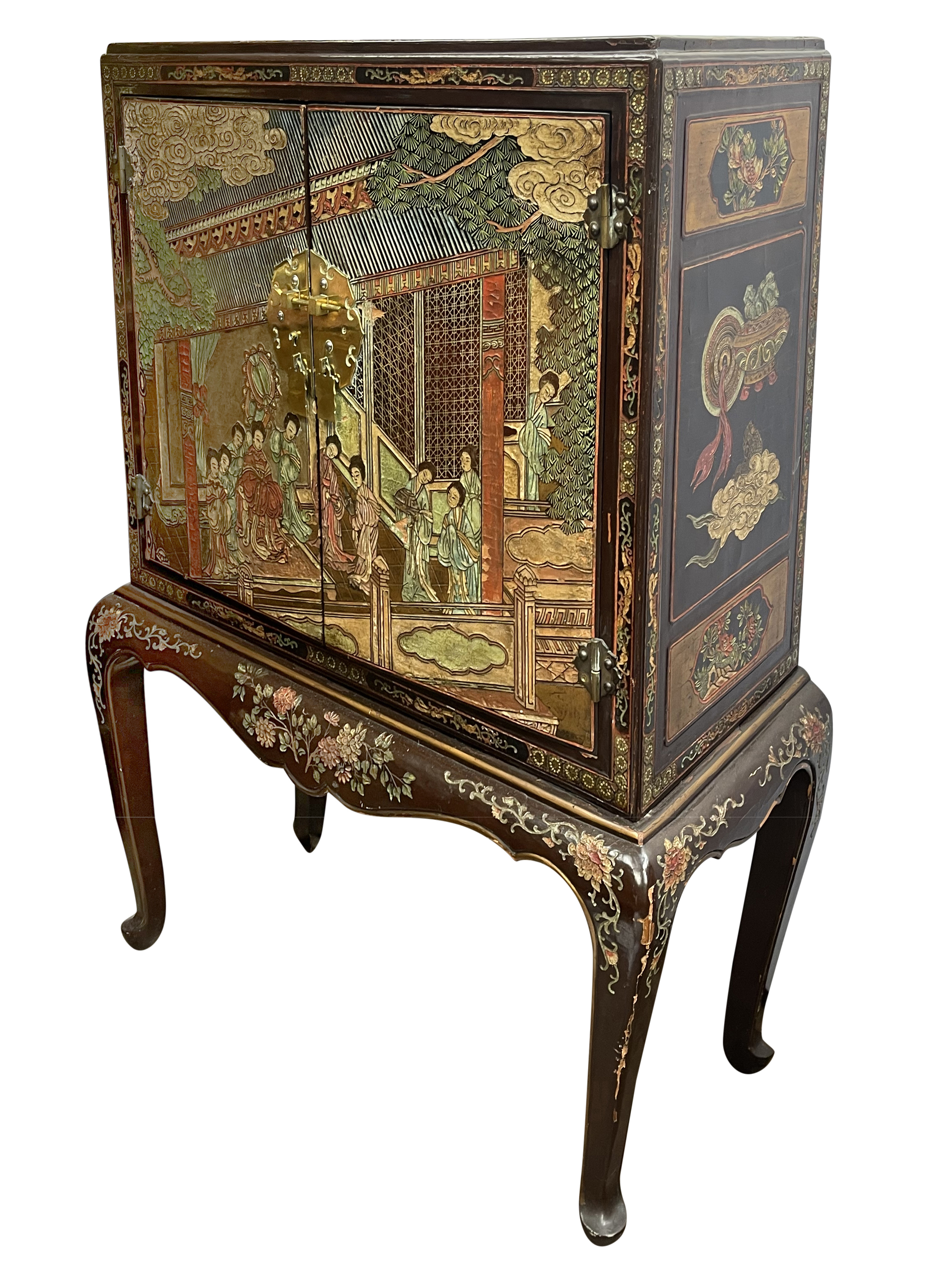 Home > Pair Chinoiserie lacquer cabinets on stand. circa 1900