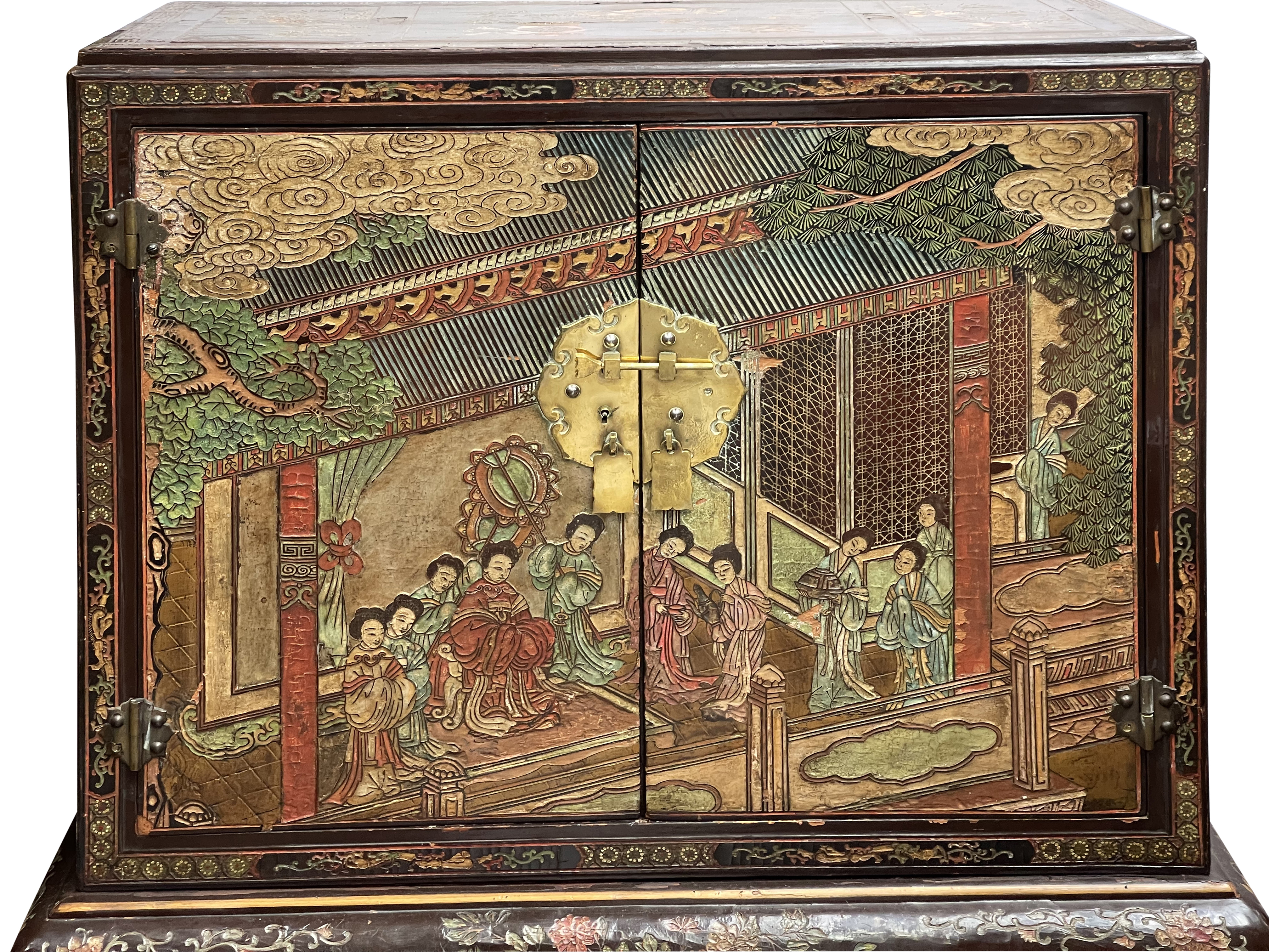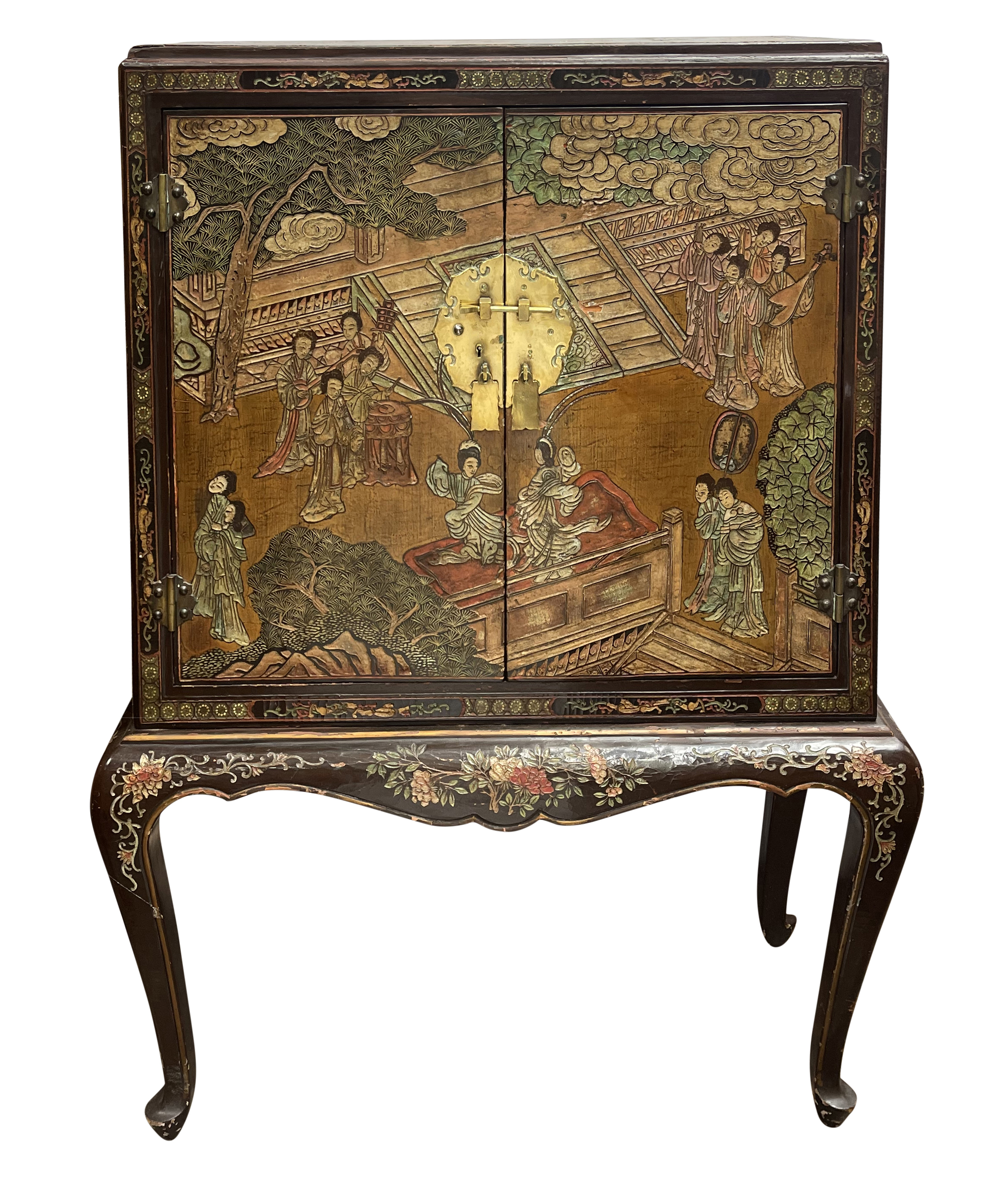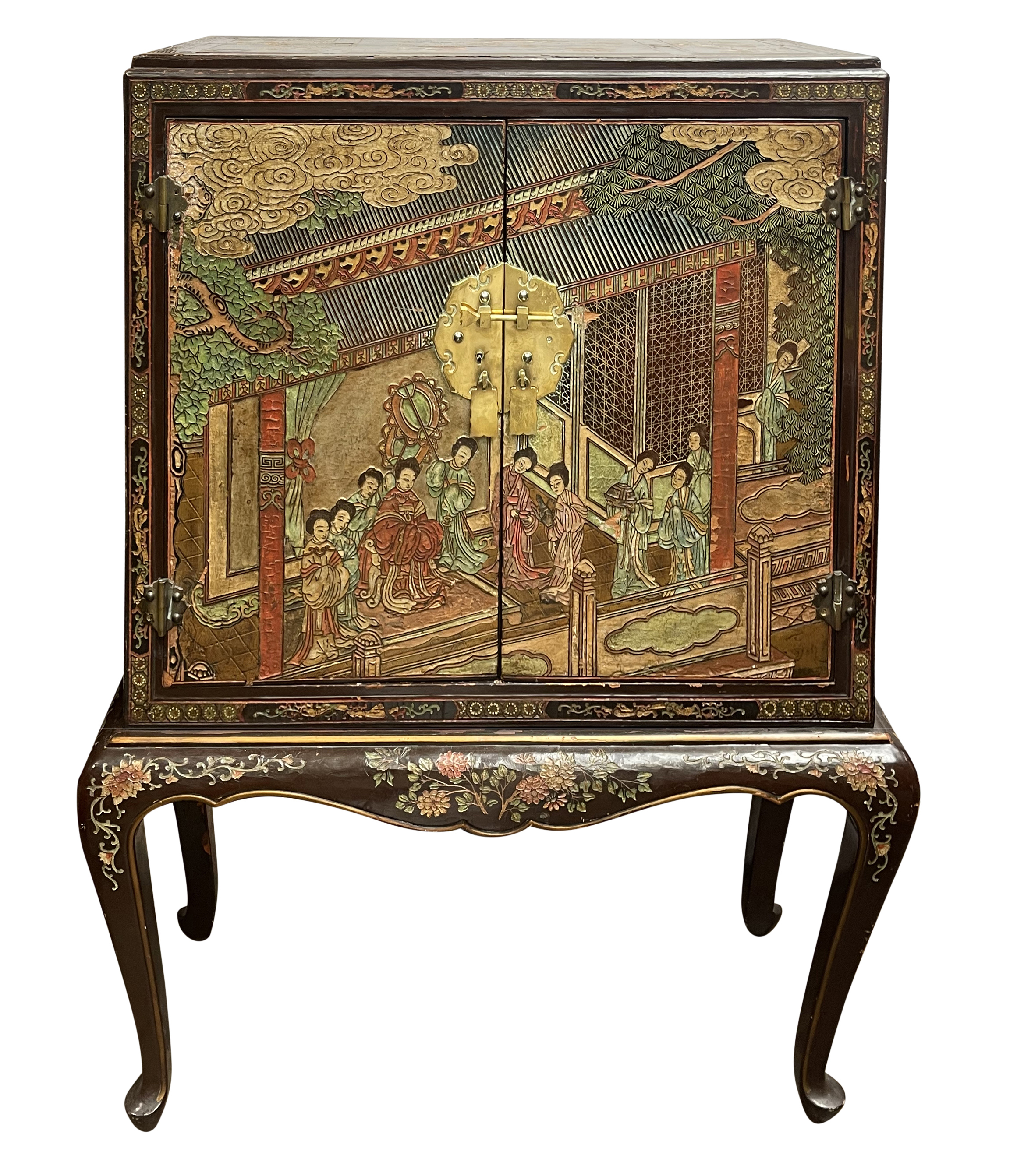 Home > Pair Chinoiserie lacquer cabinets on stand. circa 1900