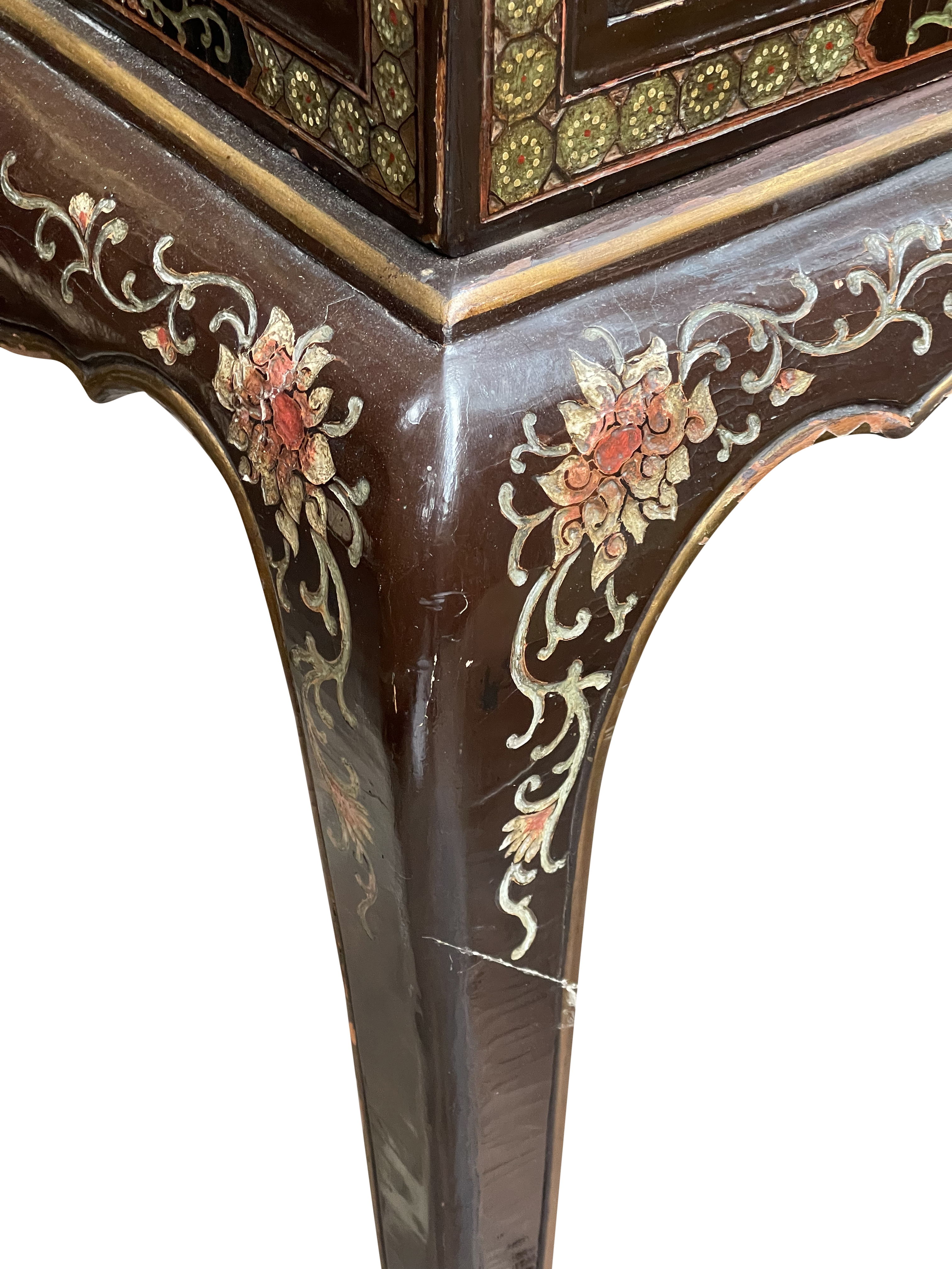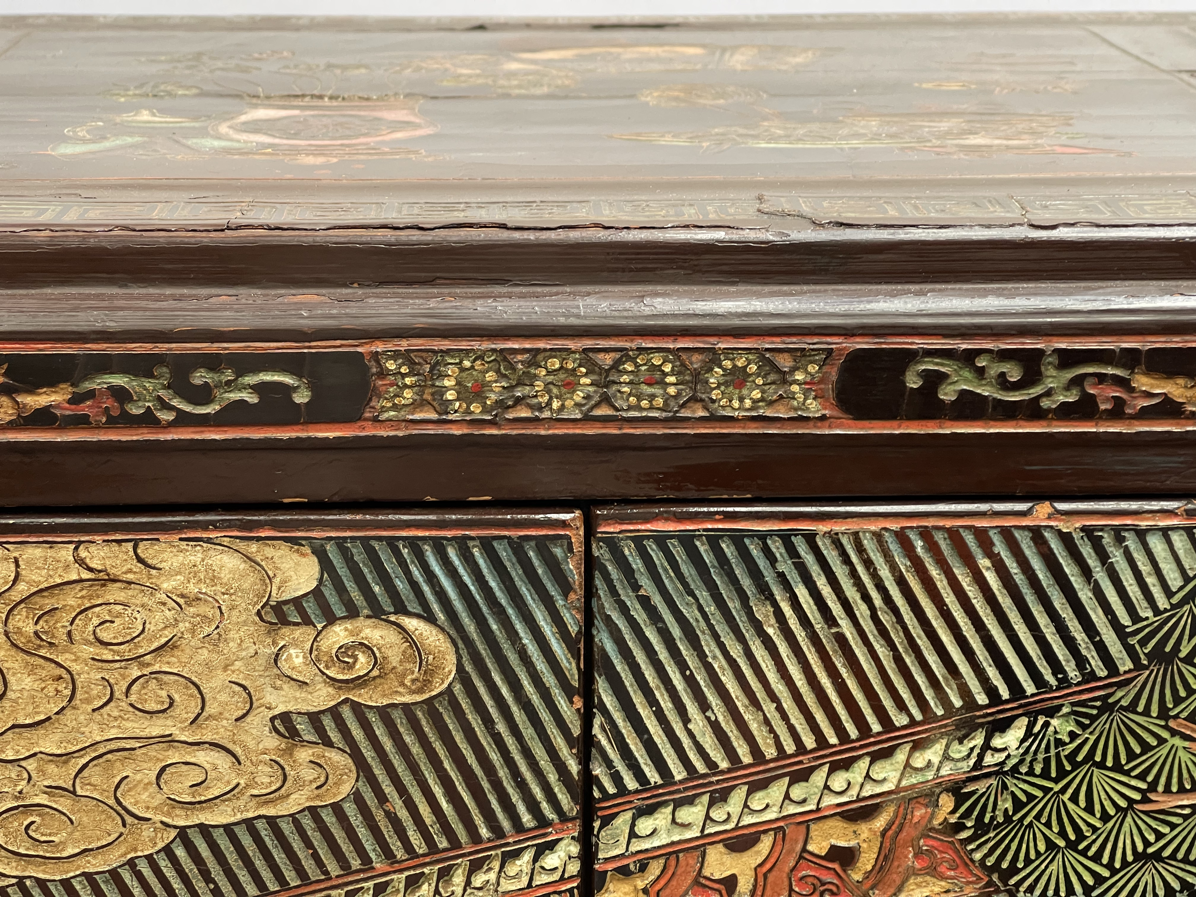 Pair Chinoiserie lacquer cabinets on stand. circa 1900