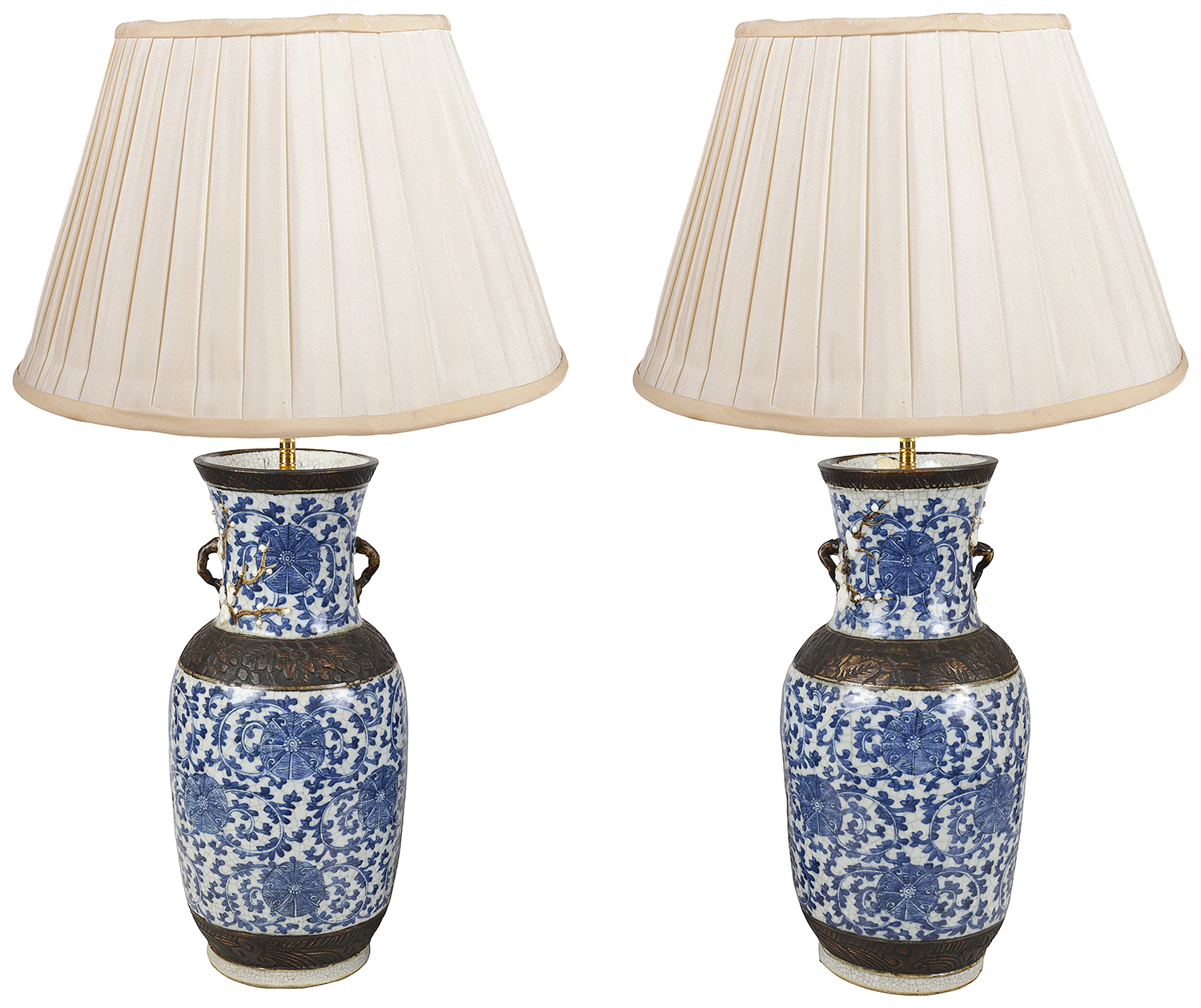 Japanese and Chinese antique vases, plates and statuettes from the 18th to the early 20th century form our impressive oriental ceramics collection. We stock Japanese Satsuma, Kutani, Imari and Arita porcelain and Chinese Cantonese, Nanking Blue and While, Famille Rose, Famille Verte, Famille Noir and Mandarin ceramics. We convert vases into lamps, illuminating the paintwork and creating a wonderful visual effect.