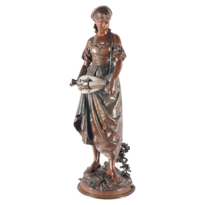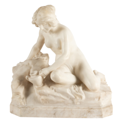 In our antique sculptures selection, you will find mainly the 19th century French and Italian bronzes by renowned sculptors such as Ferdinand Barbedienne, Pierre-Jules Mêne, Paul Duboy and Jean-Marie Pigalle. We also have Japanese Meiji bronzes, Meissen porcelain, Italian marble as well as French and Austrian terracotta statuettes. Browse our antique sculptures online or come see them at our trader's secret warehouse in Brighton to see the whole collection. To make the most of your visit, we suggest booking an appointment.