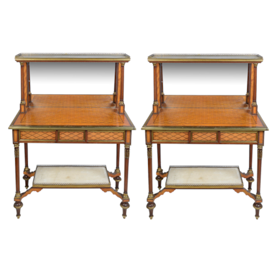 Antique dining tables, side, card and coffee tables as well as writing tables from England, Europe, China and Japan form our Tables collection that ranges from 17th to early 20th century. We stoc beautifully crafted pieces such as French 19th century mahogany Boulle centre table with ormolu mounts and bureau plats, English Regency rosewood tables, and 18th century Italian marble and carved giltwood console table. View our antique dining tables and other varieties online or visit our expansive treasure trove in Brighton. We recommend booking an appointment and will be delighted to give you a tour.